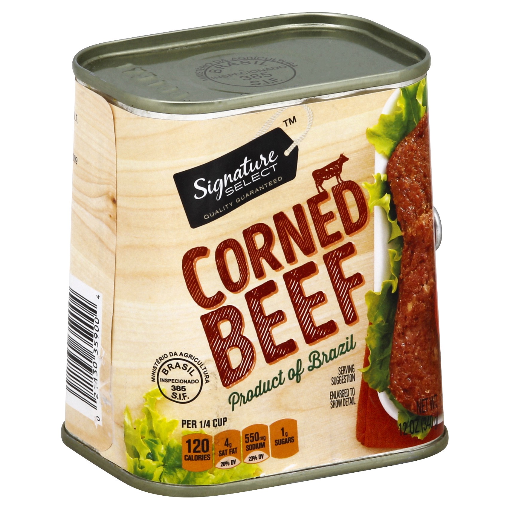 Quality guaranteed. Signature Select Corned Beef is fully cooked and ready to serve chilled or heated. For slicing, chill can before opening. Per 1/4 Cup: 120 calories; 4 g sat fat (20% DV); 550 mg (2…
