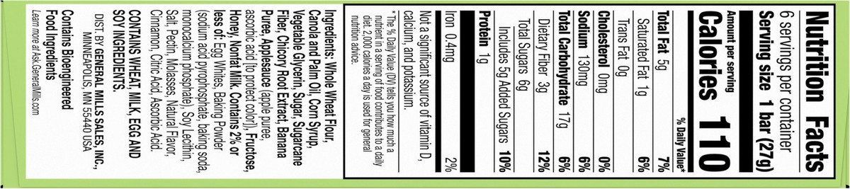 Whole Wheat Flour, Canola and Palm Oil, Corn Syrup, Vegetable Glycerin, Sugar, Sugarcane Fiber, Chicory Root Extract, Banana Puree, Applesauce (Apple Puree, Ascorbic Acid [to Protect Color]), Fructose…