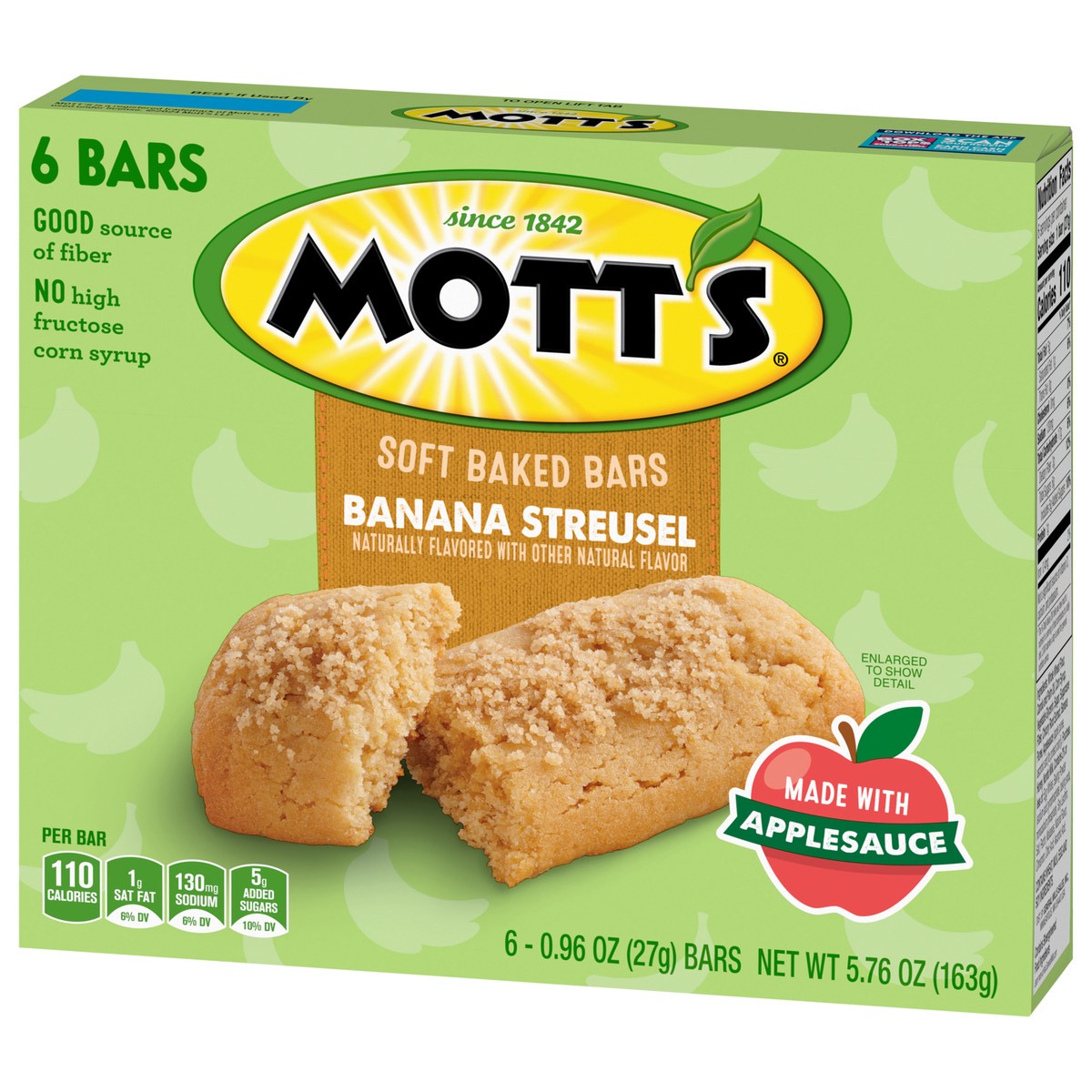 Mott's Soft Baked Bars, Banana Streusel, Made With Applesauce, 6 Count, 5.76 oz