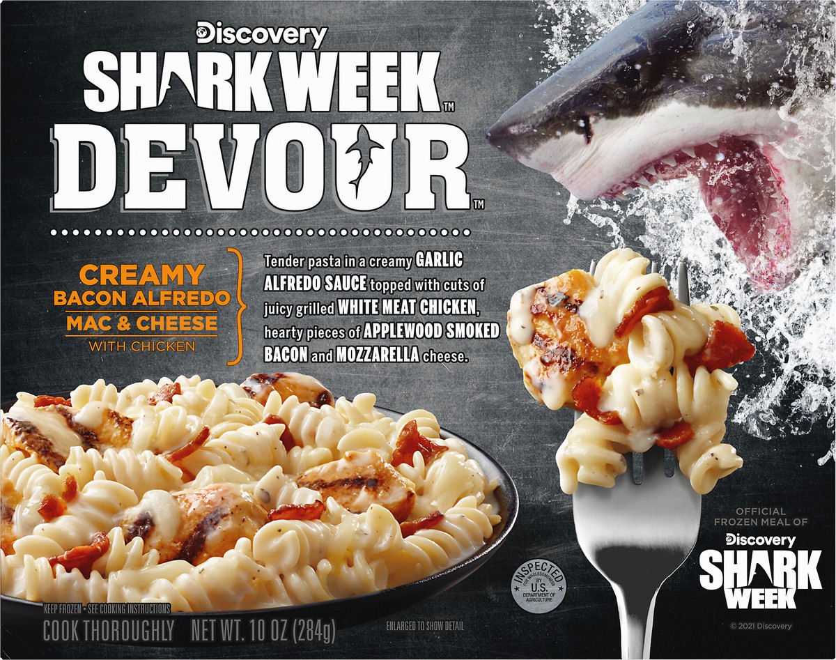- DEVOUR Creamy Bacon Alfredo Mac & Cheese with Chicken is made with juicy grilled white meat chicken