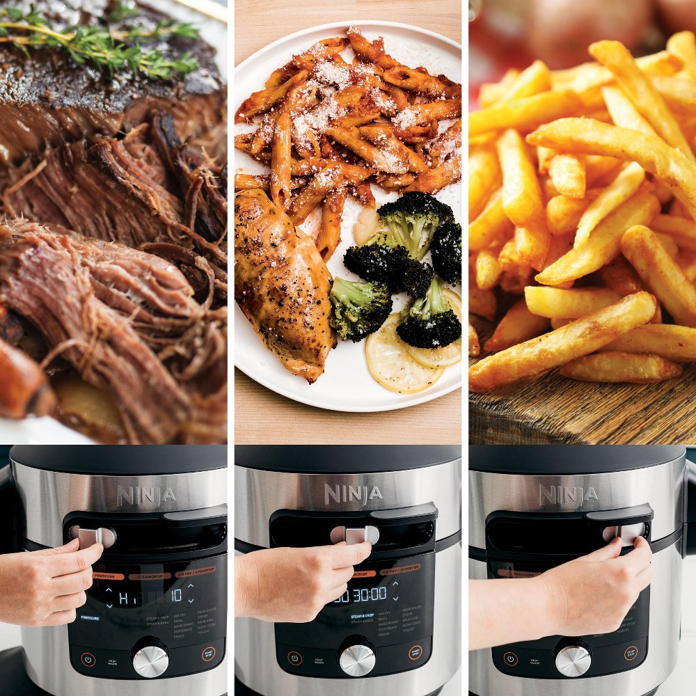 Meet the Ninja Foodi 14-in-1 8-qt. XL Pressure Cooker Steam Fryer with SmartLid. The pressure cooker that steams and crisps. SmartLid Slider unlocks pressure cooking, air frying, and SteamCrisping, al…