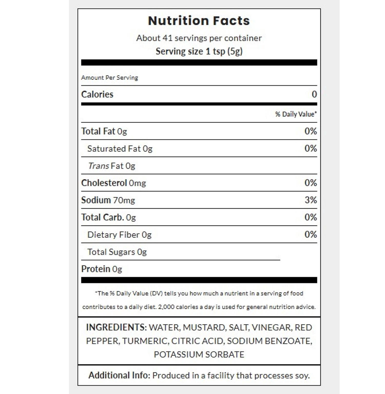 Water, Mustard, Vinegar, Salt, Spices, Turmeric.