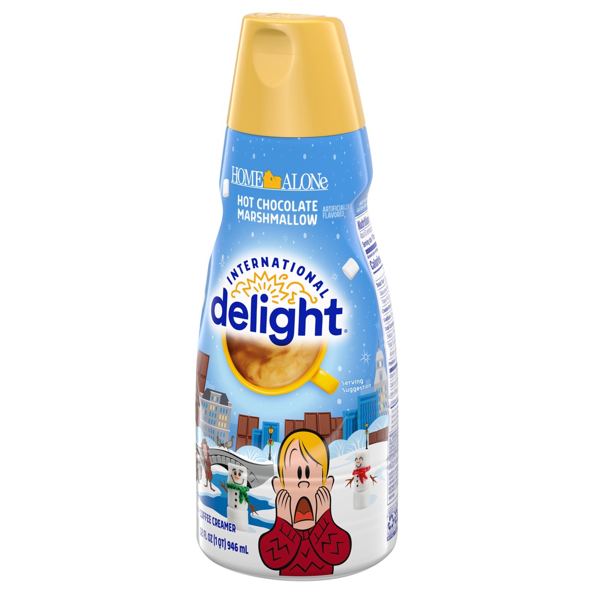 - ONLY HERE FOR THE HOLIDAYS: One 32 fluid ounce bottle of International Delight Refrigerated Home Alone Hot Chocolate Marshmallow Creamer
