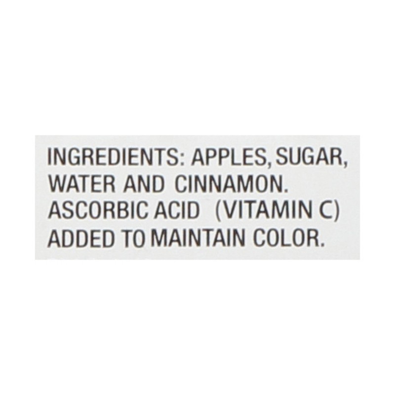 Apples, Sugar, Water and Cinnamon, Ascorbic Acid (Vitamin C) Added to Maintain Color.