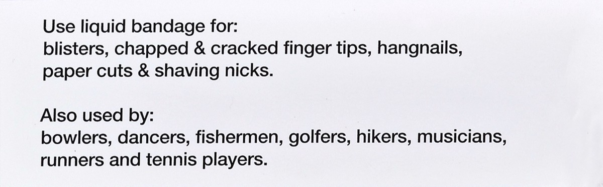 Other Information: Cap bottle tightly. Store between 68 degrees to 77 degrees F (20 degrees to 25 degrees C). May temporarily sting upon application. To remove, apply more Liquid Bandage and quickly w…