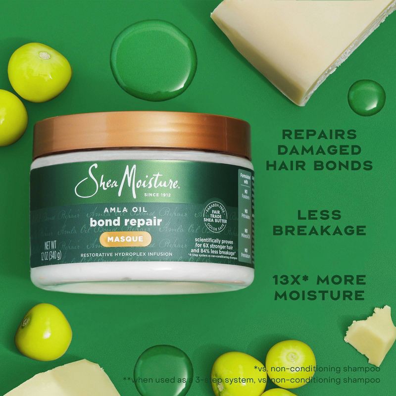 - BOND WITH STRONGER HAIR: SheaMoisture® Bond Repair Masque helps you unmask your best style yet by repairing damaged hair bonds and strengthening hair for less breakage.