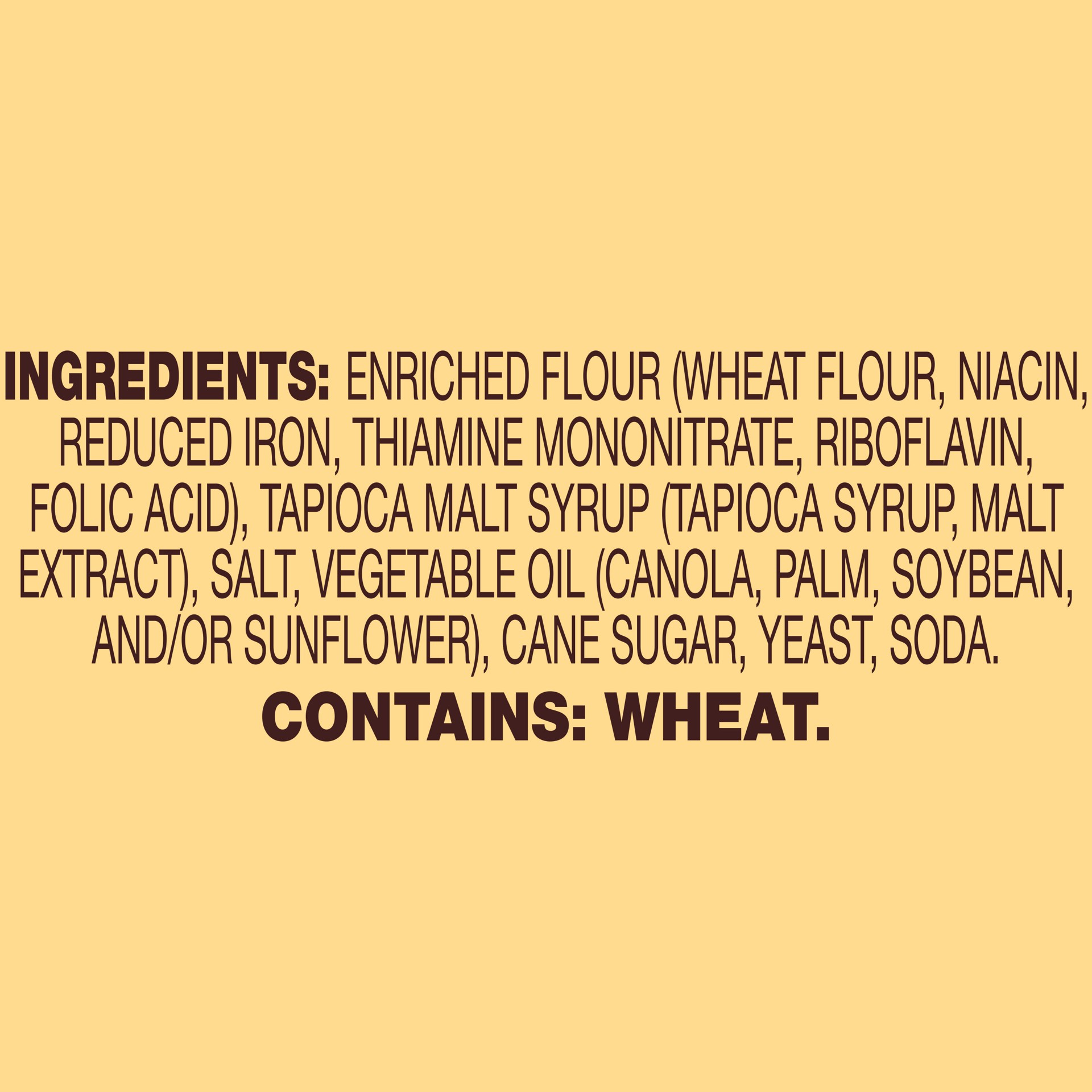 INGREDIENTS: ENRICHED FLOUR (WHEAT FLOUR, NIACIN, REDUCED IRON, THIAMINE MONONITRATE, RIBOFLAVIN, FOLIC ACID), TAPIOCA MALT SYRUP (TAPIOCA SYRUP, MALT EXTRACT), SALT, VEGETABLE OIL (CANOLA, PALM, SOYB…