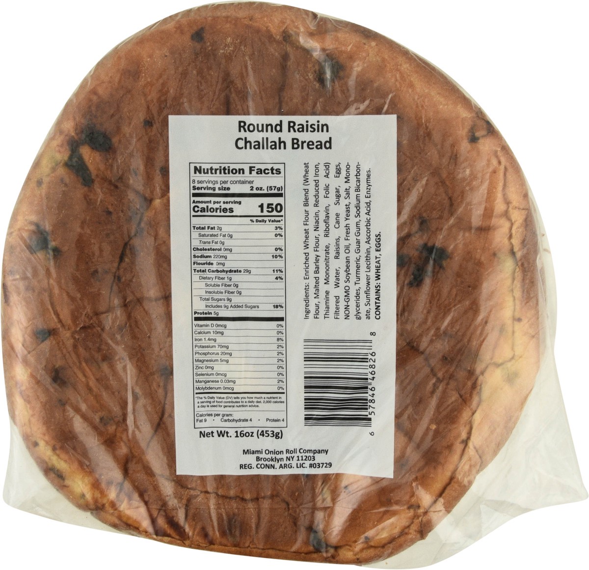 Miami Onion Roll Company Round Challah Raisin Bread 16 oz