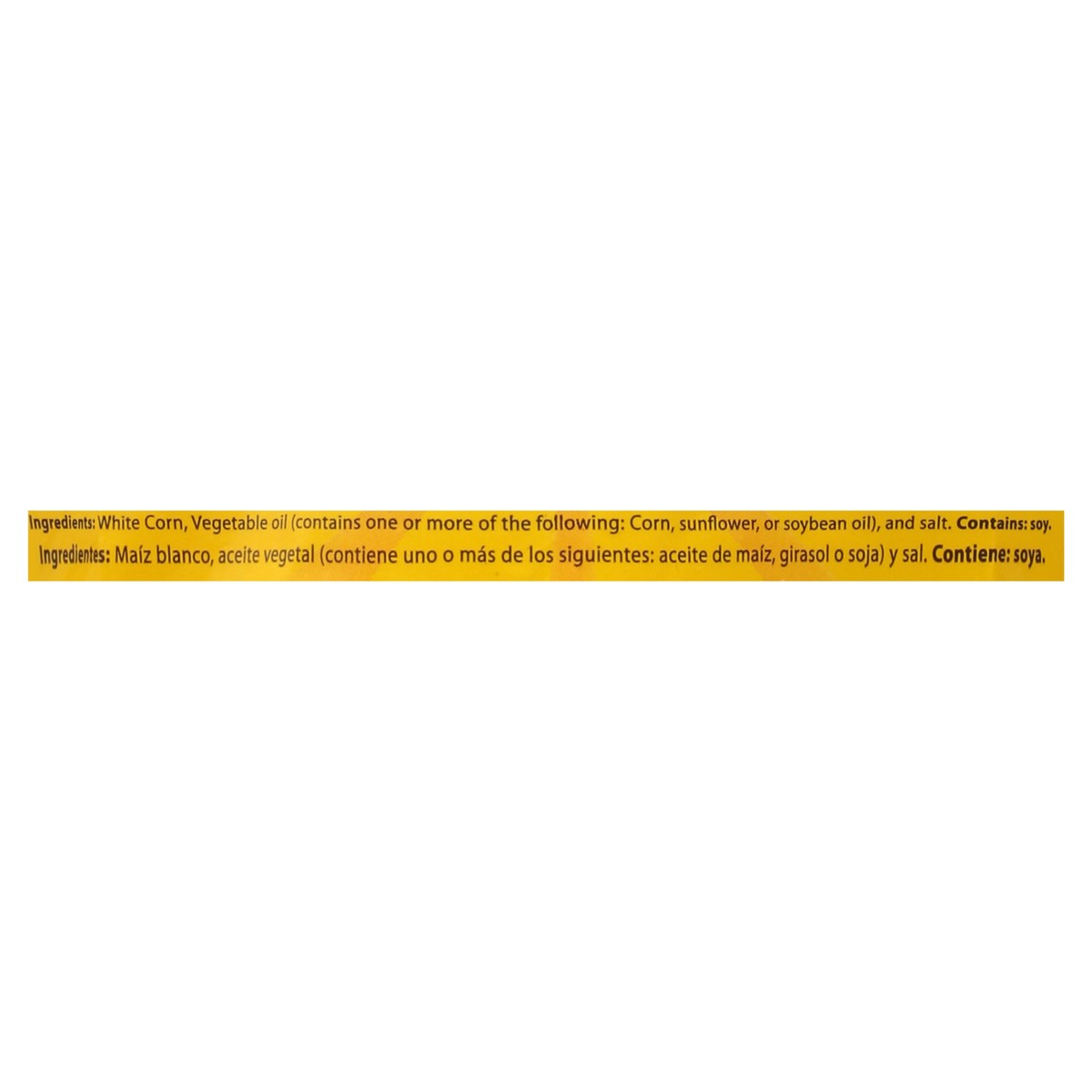 White Corn, Vegetable Oil (Contains One or More of the Following: Corn, Sunflower, or Soybean Oil), and Salt.