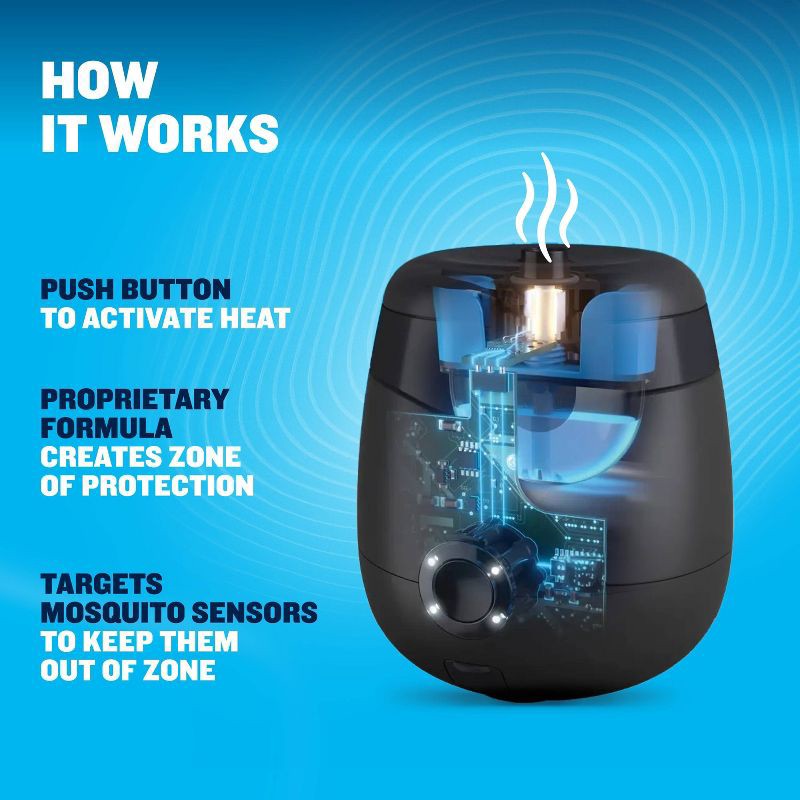 - EASY TO USE, NO SPRAY NEEDED: On-demand mosquito repellent starts heating with the push of a button, reaching max protection in 15 minutes. No need to apply sticky DEET sprays or lotions, clean up dead bugs, or reapply to your yard throughout the season. Scent-free, no smoke, and no flames.