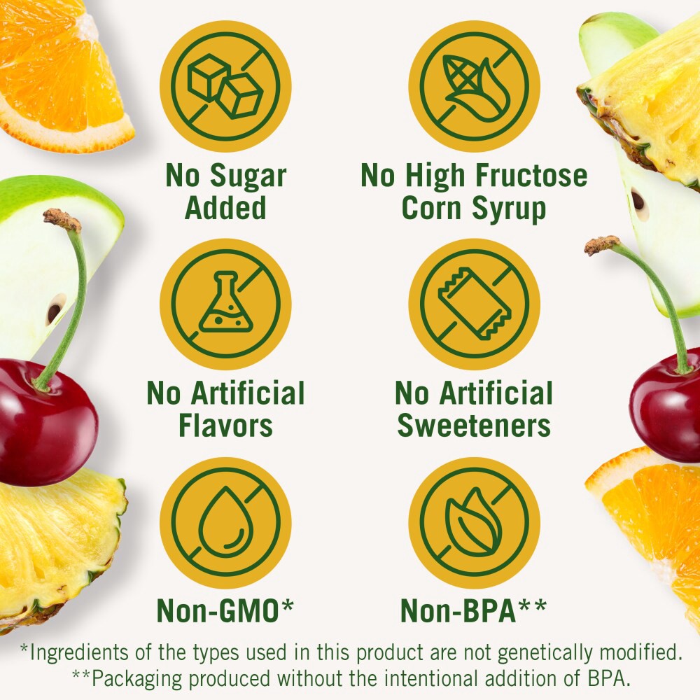 Diced peaches in naturally sweetened water. Cherry mixed fruit in naturally sweetened water with cherry flavor. Mixed fruit in naturally sweetened water. No sugar added. No artificial sweeteners. Non-…
