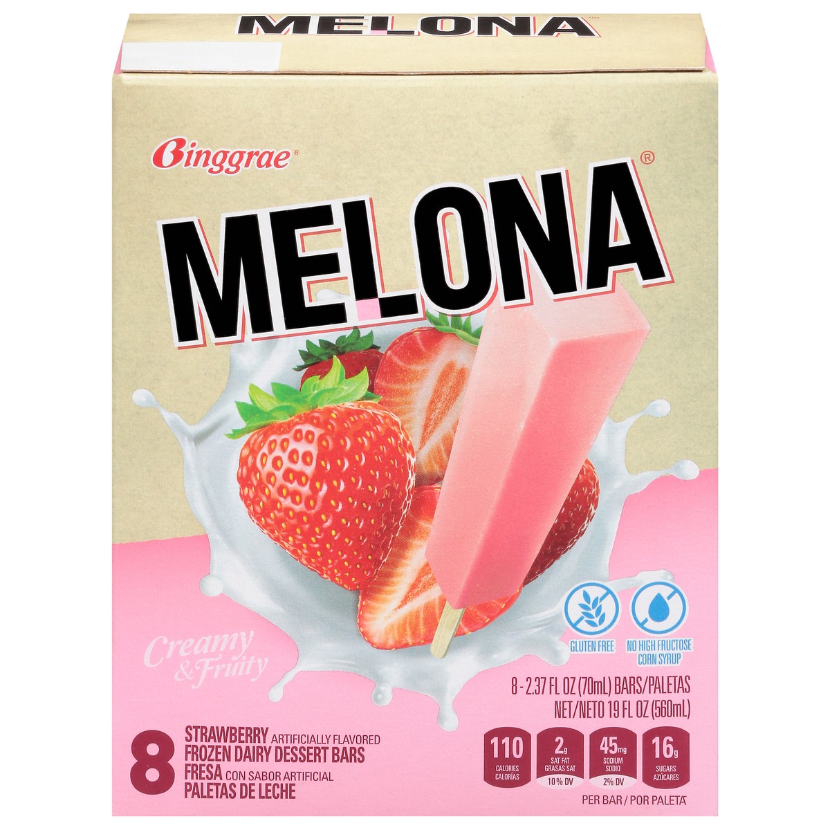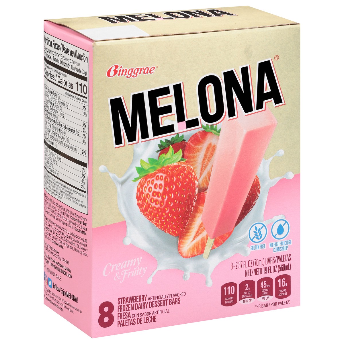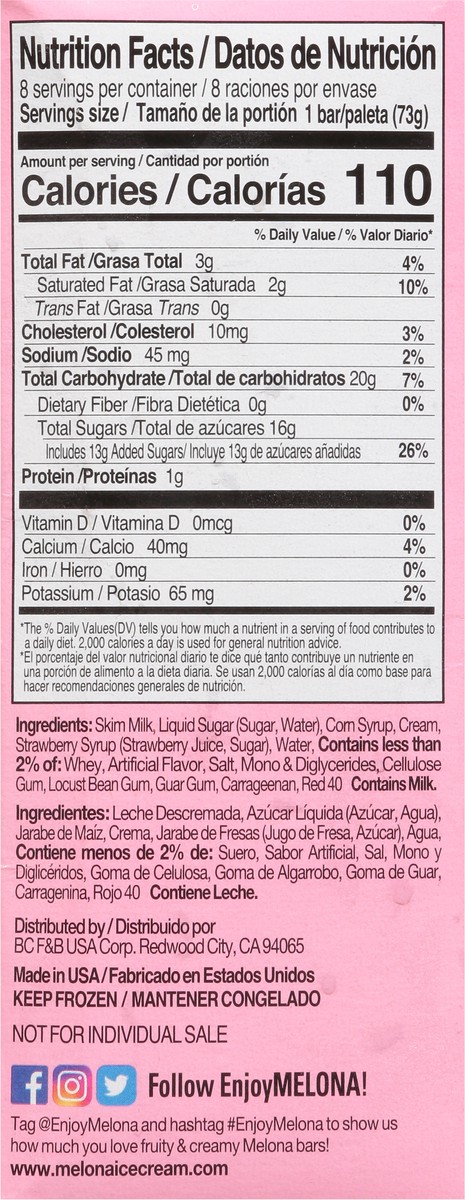 Melona Creamy & Fruity Strawberry Dessert Bars 8 - 2.37 fl oz Bars