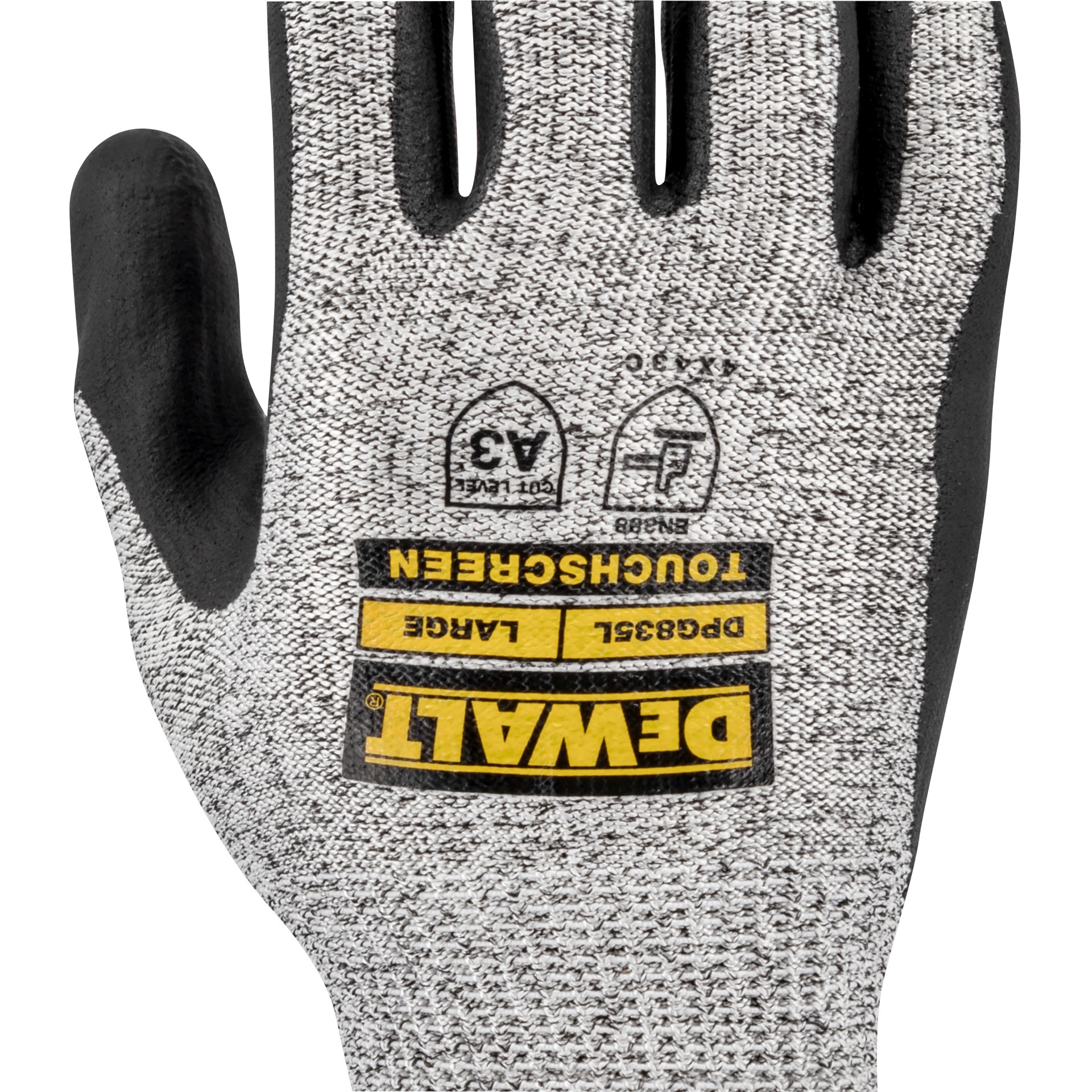 DEWALT DPG835 Salt/Pepper 3 Touchscreen 13 Ga HPPE Foam Nitrile A3 Cut Glove L