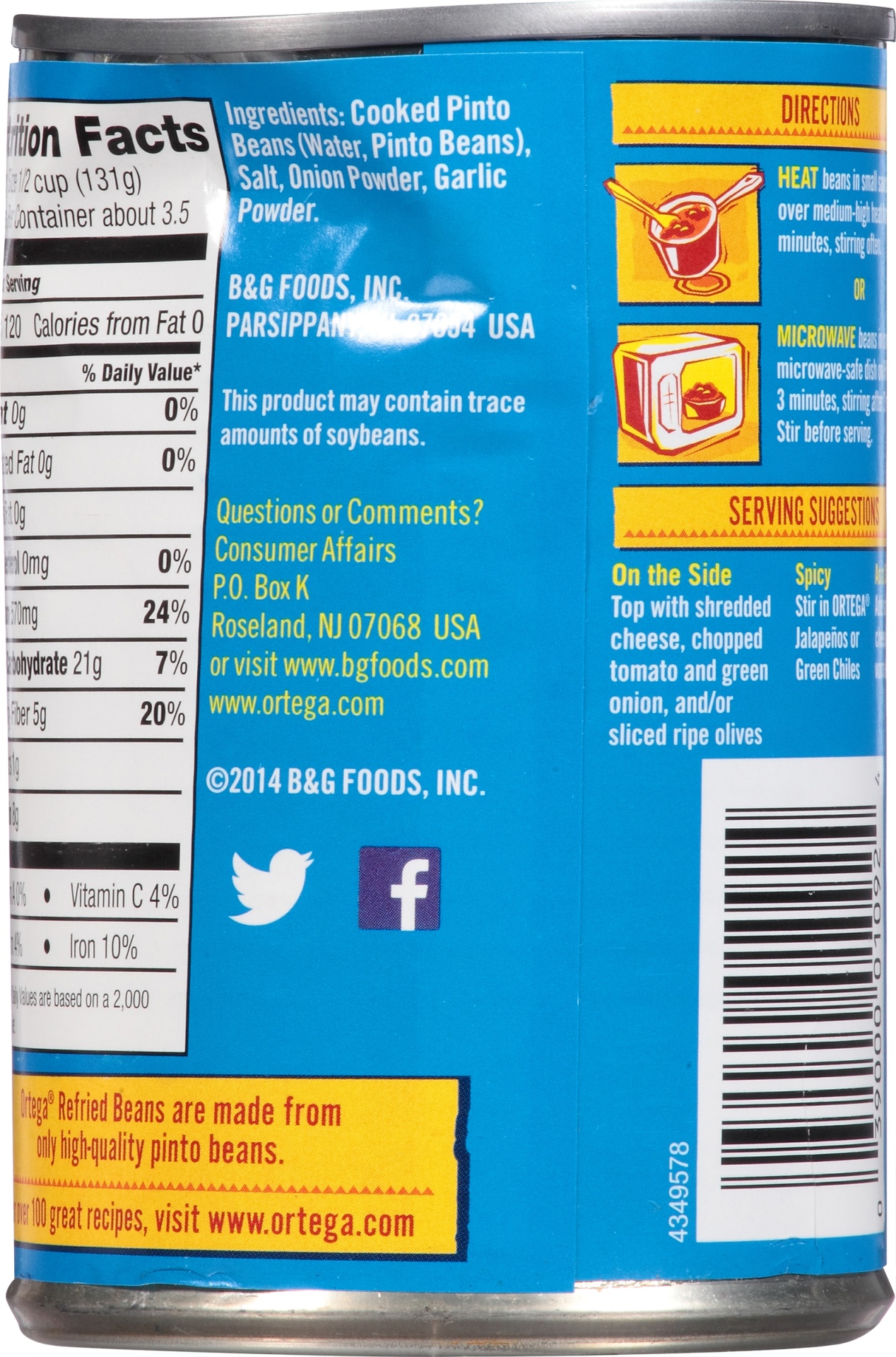 A family tradition since 1897. Ortega Refried Beans are made from only high-quality pinto beans. Recycle.