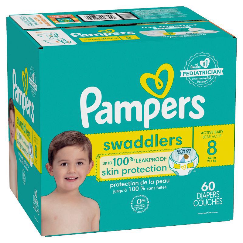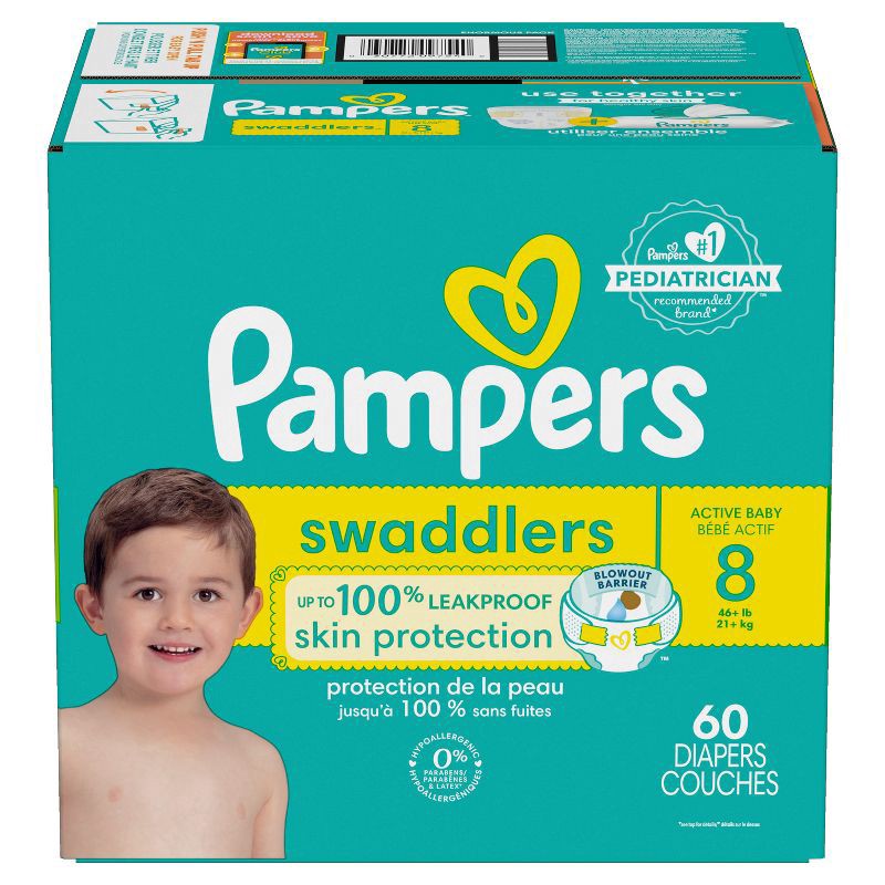 Wrap your baby in our best dryness and comfort ever. Try Pampers Swaddlers. These Pampers disposable diapers are designed with a KeepDry Liner and irresistible pillowy softness to keep your baby dry a…