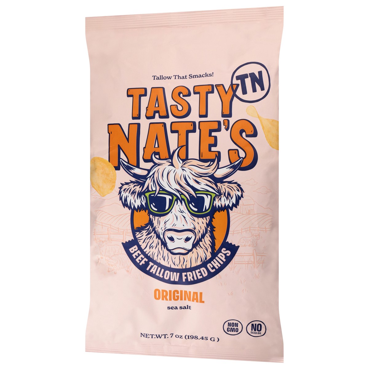 Meet the chip that started the Seed Oil Rebellion. Tasty Nate's Original Sea Salt chips are the purest expression of our mission—just real potatoes, sea salt, and 100% beef tallow. That's it.No seed o…