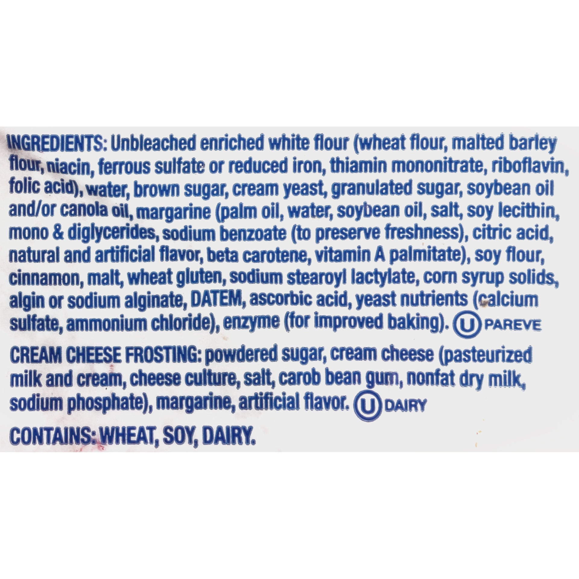 Unbleached Enriched White Flour (Wheat Flour, Malted Barley Flour, Niacin, Ferrous Sulfate or Reduced Iron, Thiamin Mononitrate, Riboflavin, Folic Acid), Water, Brown Sugar, Cream Yeast, Sugar, Soybea…