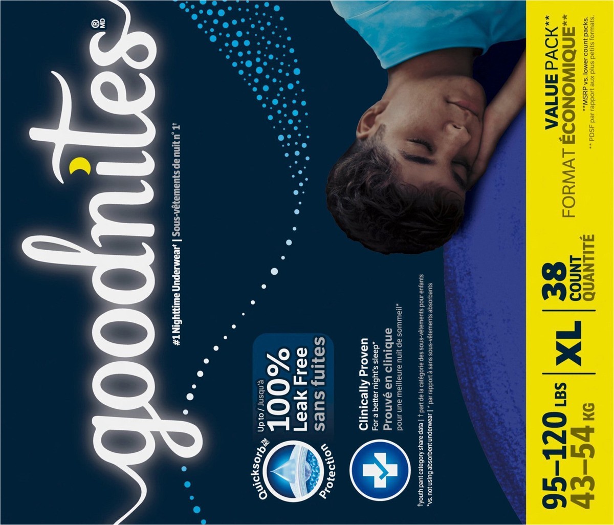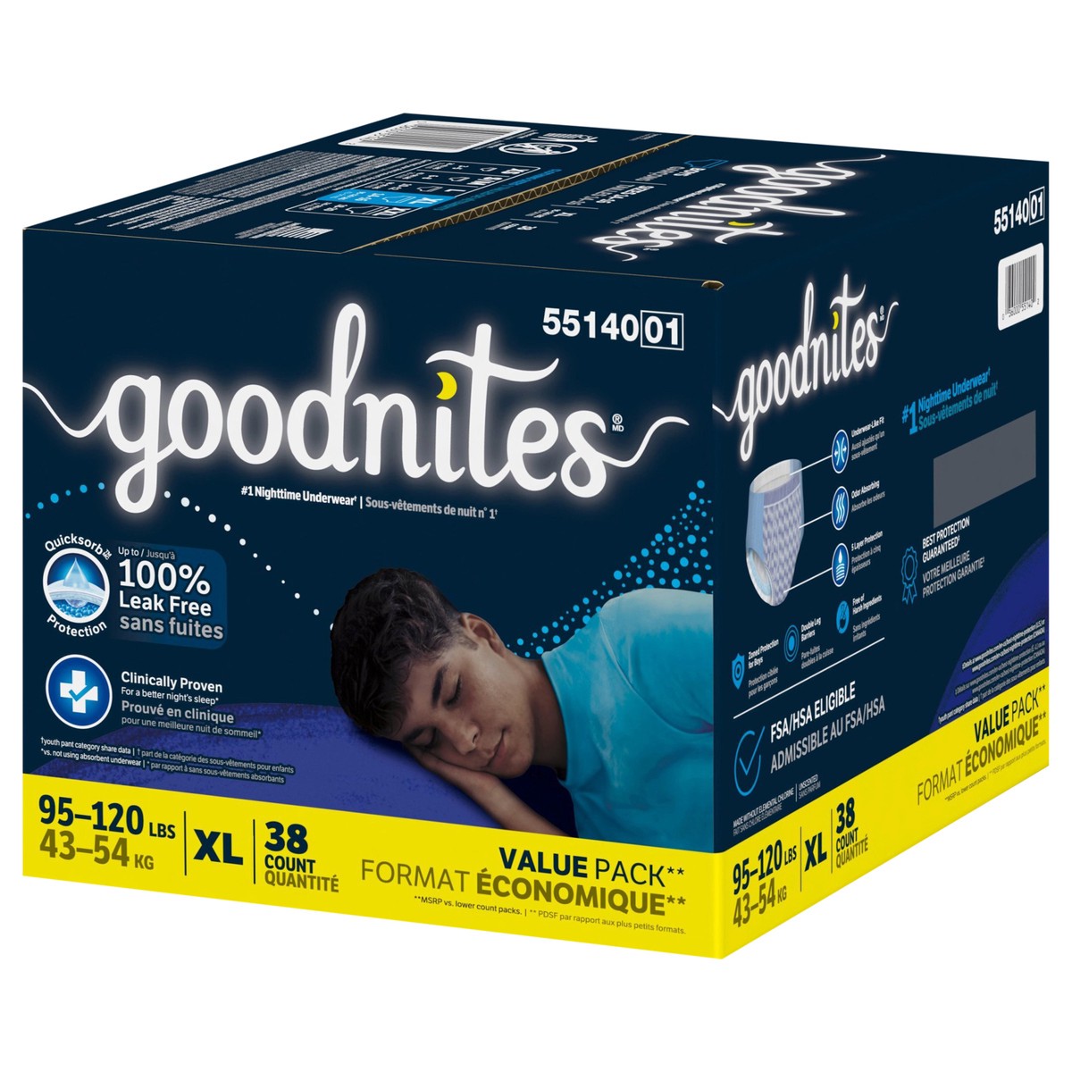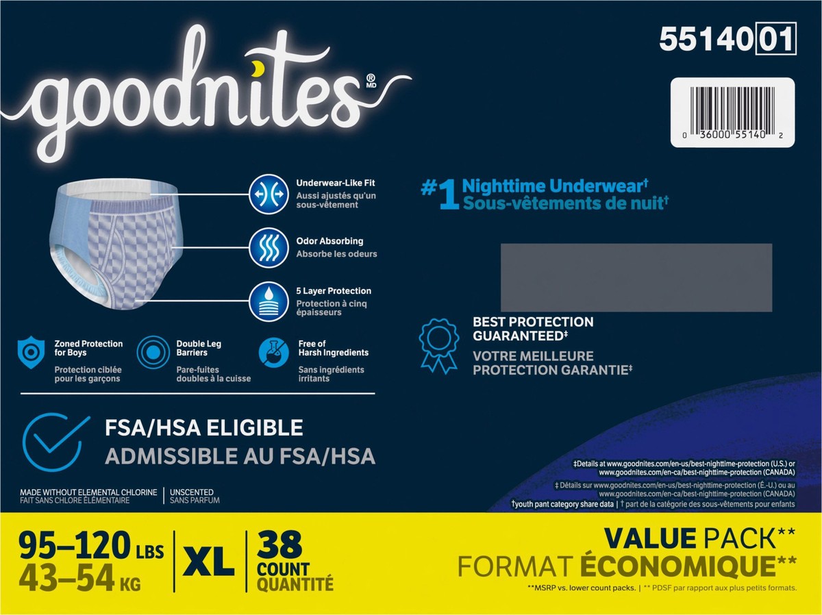 Goodnites Boys'' Nighttime Bedwetting Underwear, Size Extra Large (95-140+ lbs), 38 Ct