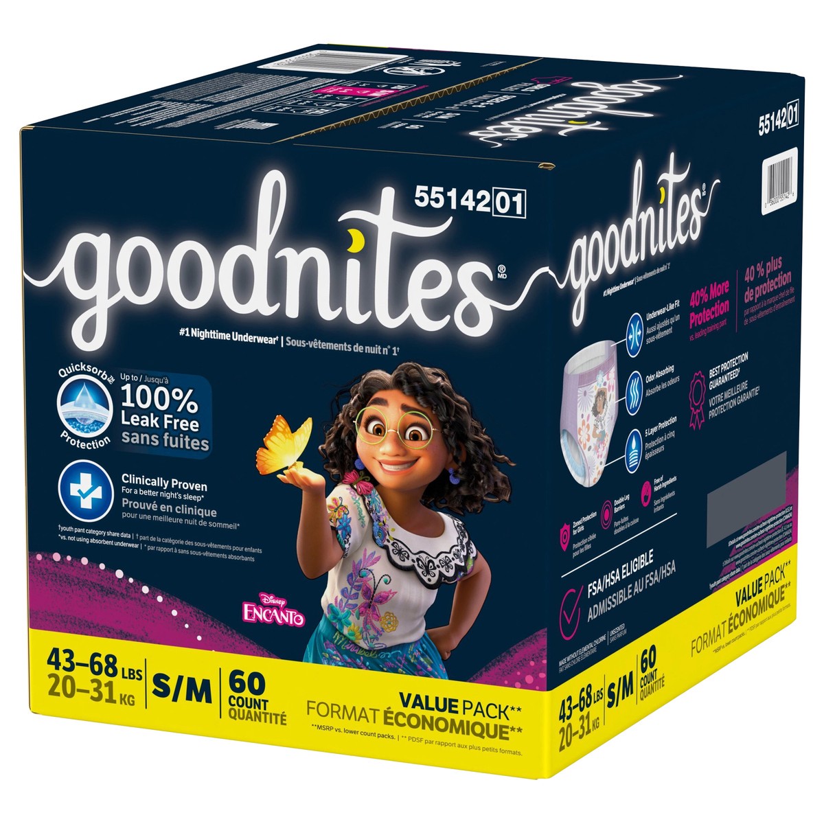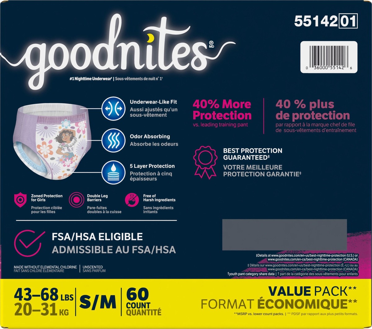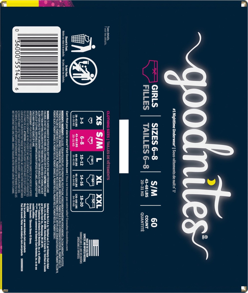 Goodnites Girls' Nighttime Bedwetting Underwear, Size S/M (43-68 lbs), 60 Ct