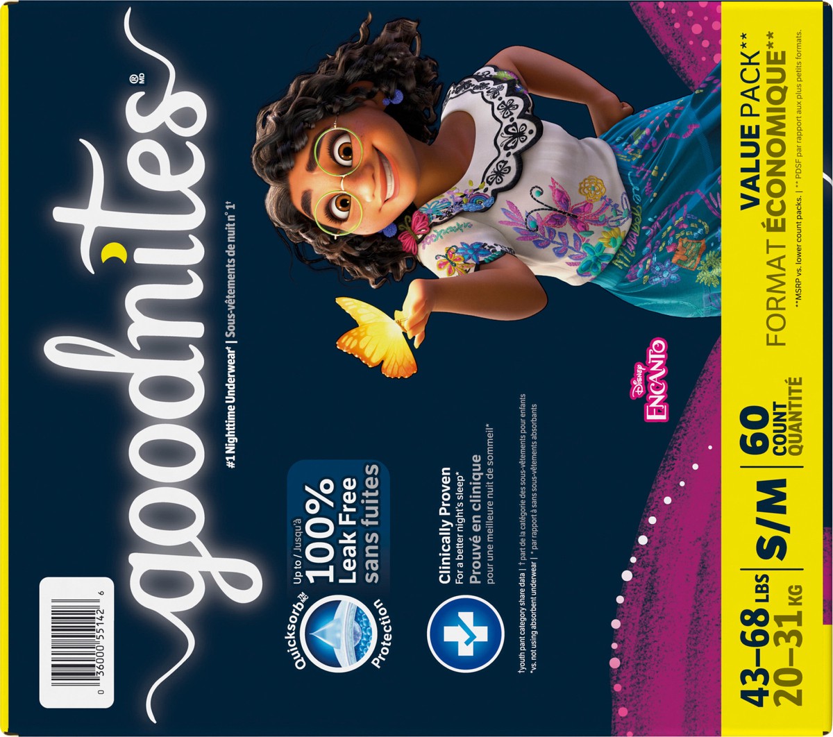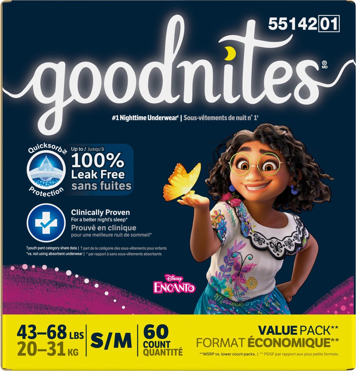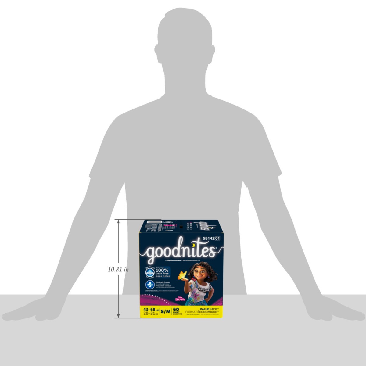 Goodnites Girls' Nighttime Bedwetting Underwear, Size S/M (43-68 lbs), 60 Ct