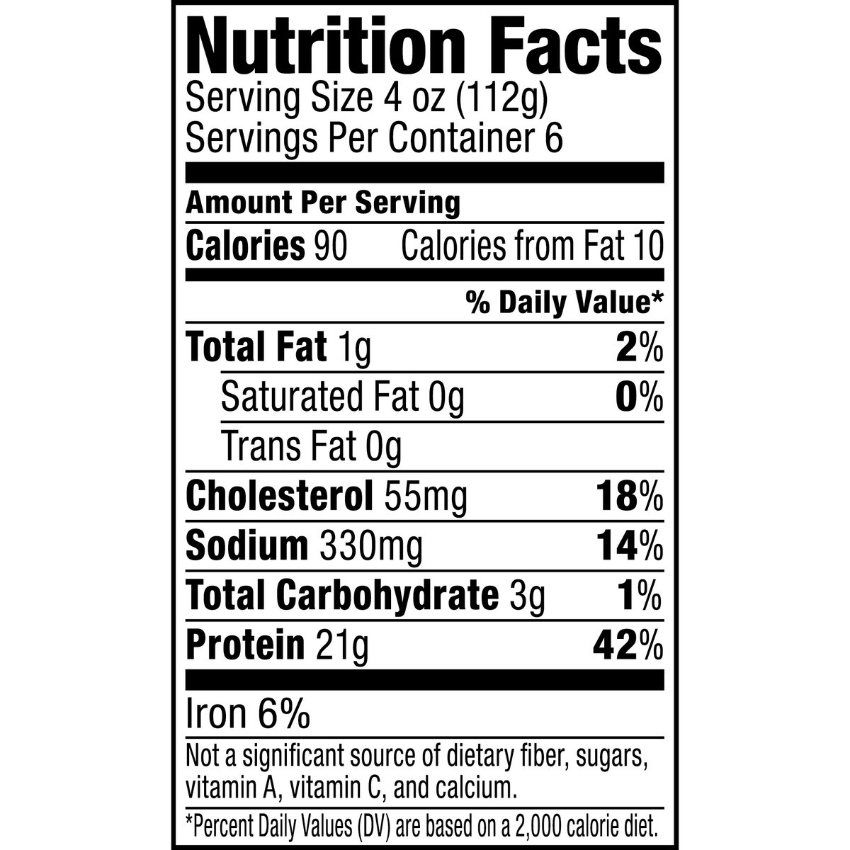 Contains up to 30% of seasoning solution consisting of water, contains 2% or less of salt, sugar, natural flavor, vinegar. Gluten free. 99% fat free. Ready to cook. Contain up to 30% of seasoning solu…