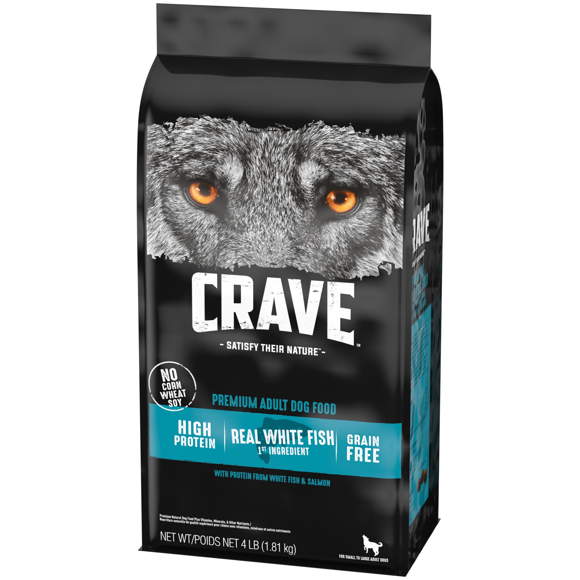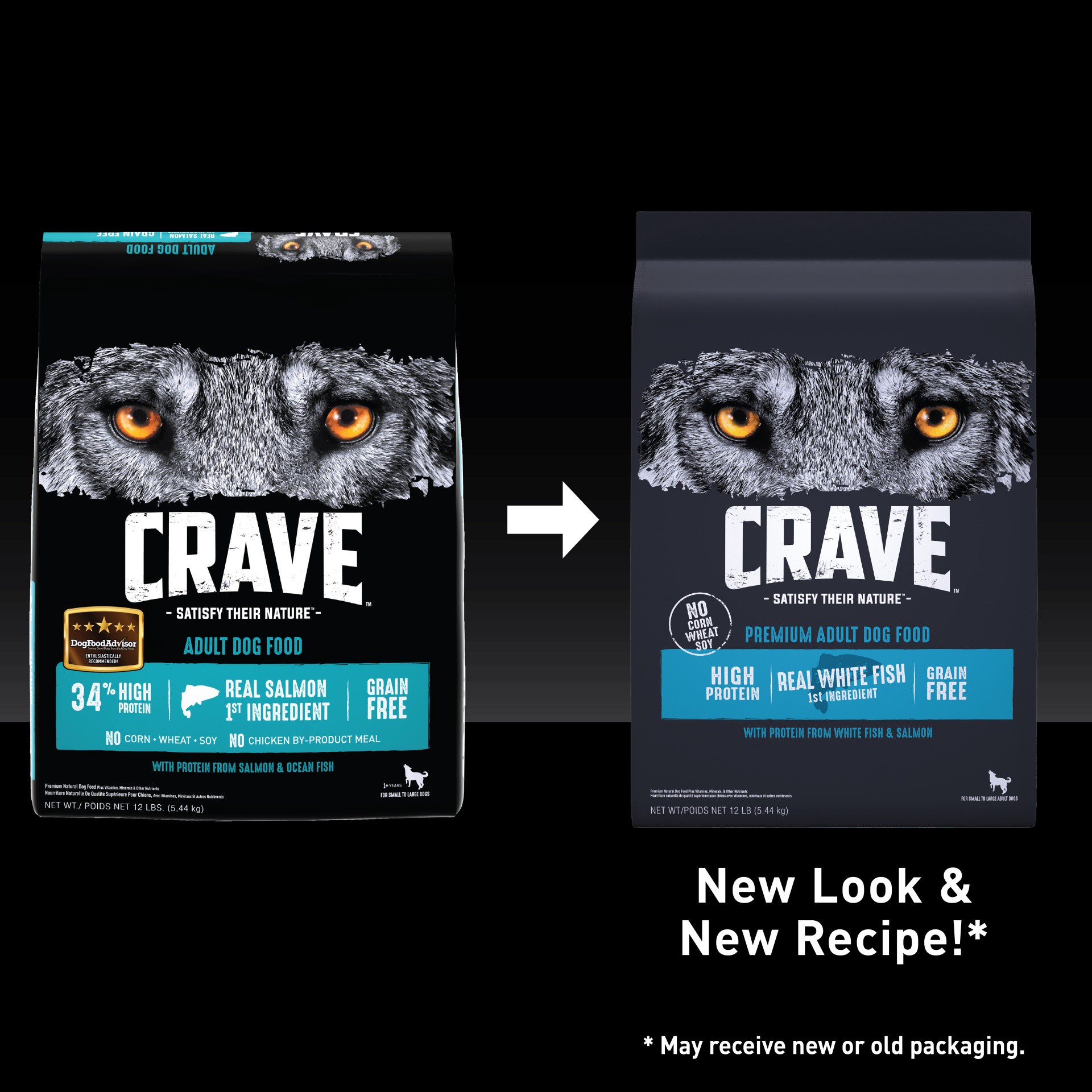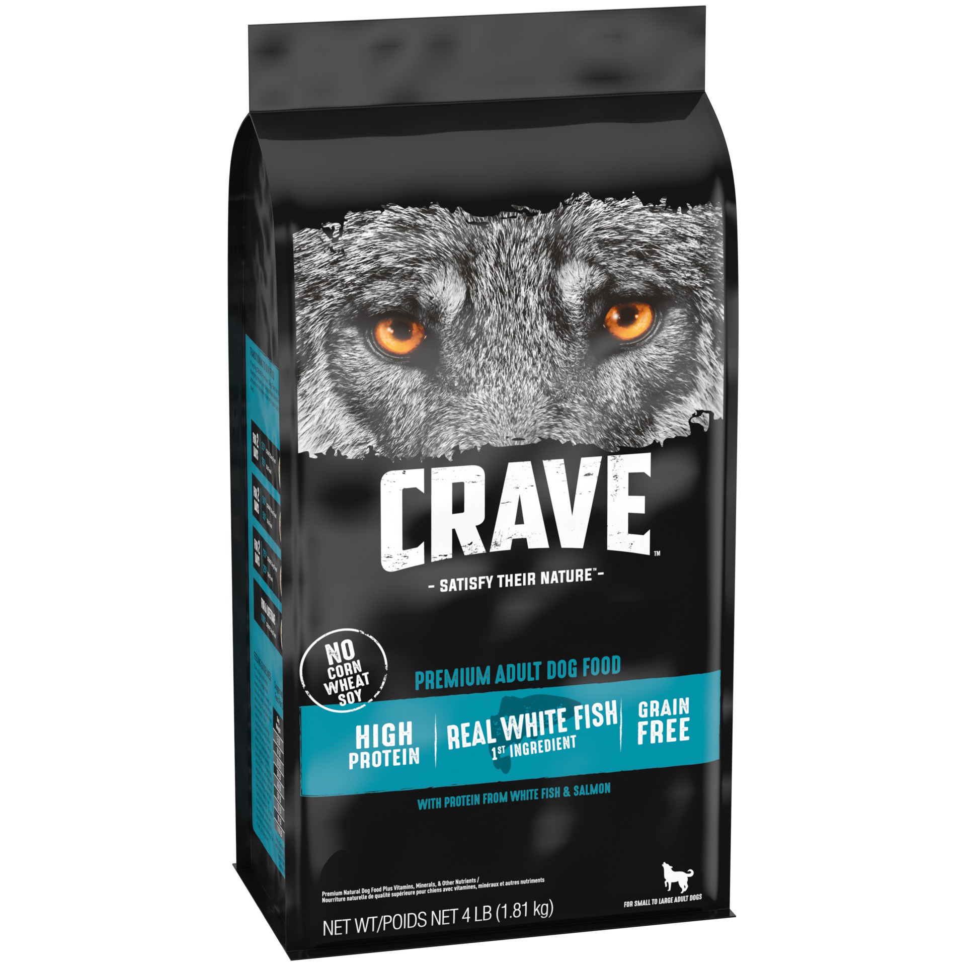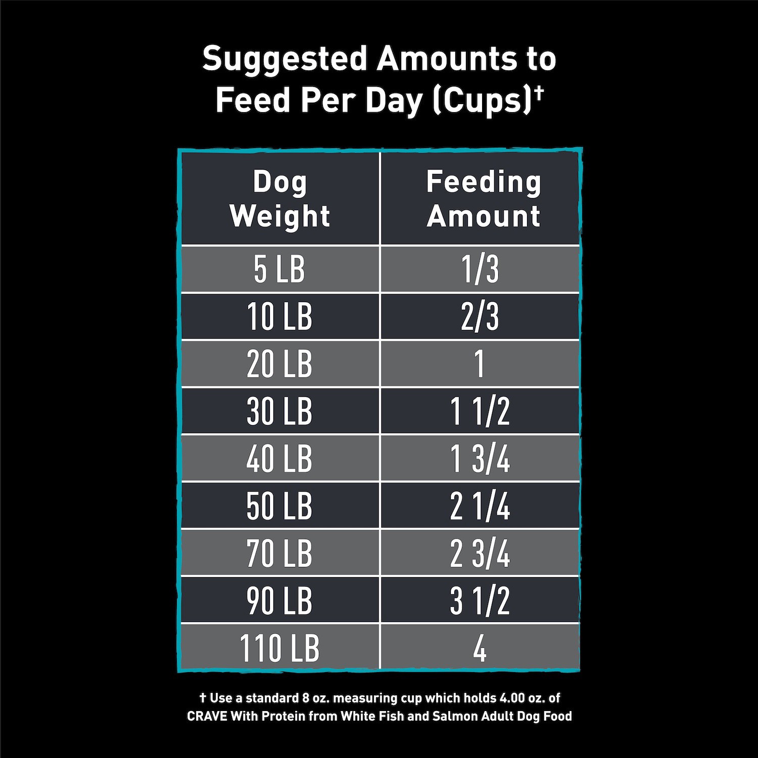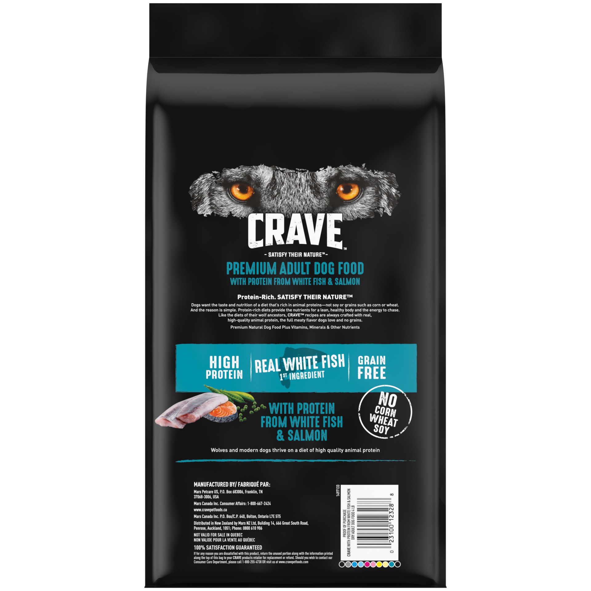 Calorie Content (Calculated): 3717 kcal ME/kg, 422 kcal ME/cup. Crave With Protein from White Fish & Salmon Adult Dog Food is formulated to meet the nutritional levels established by the AAFCO Dog Foo…