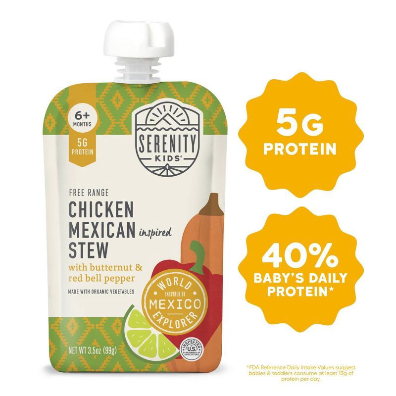 Serenity Kids World Explorer Free Range Chicken Mexican Inspired Stew with Organic Vegetables Baby Food Pouch - 3.5oz