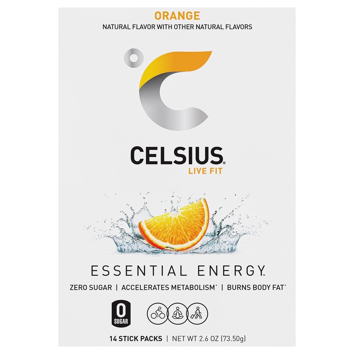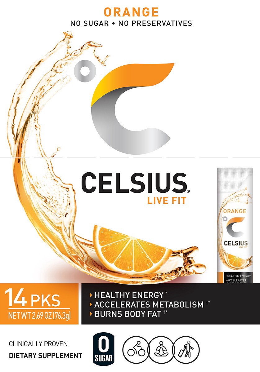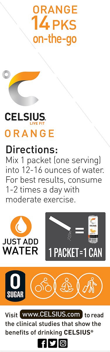 CELSIUS On The Go Energy Drink Mix, Orange (14 Stick Pack)