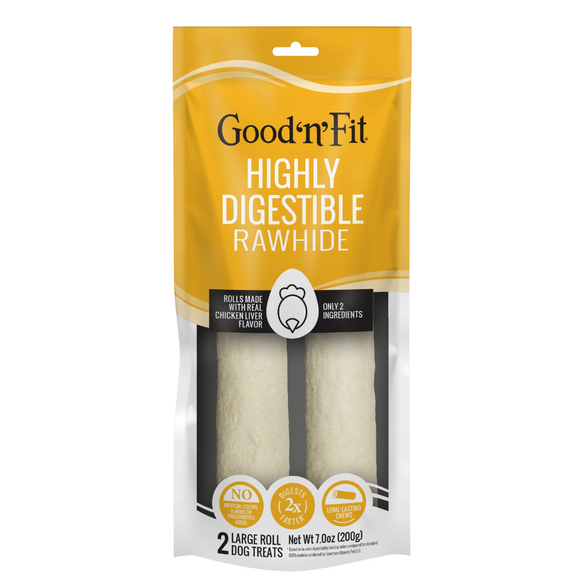These Good ‘n' Fit® Large Rolls are long-lasting, highly digestible chews that are sure to please! Our patented production process helps break down tough fibers in standard rawhide for a rawhide with …
