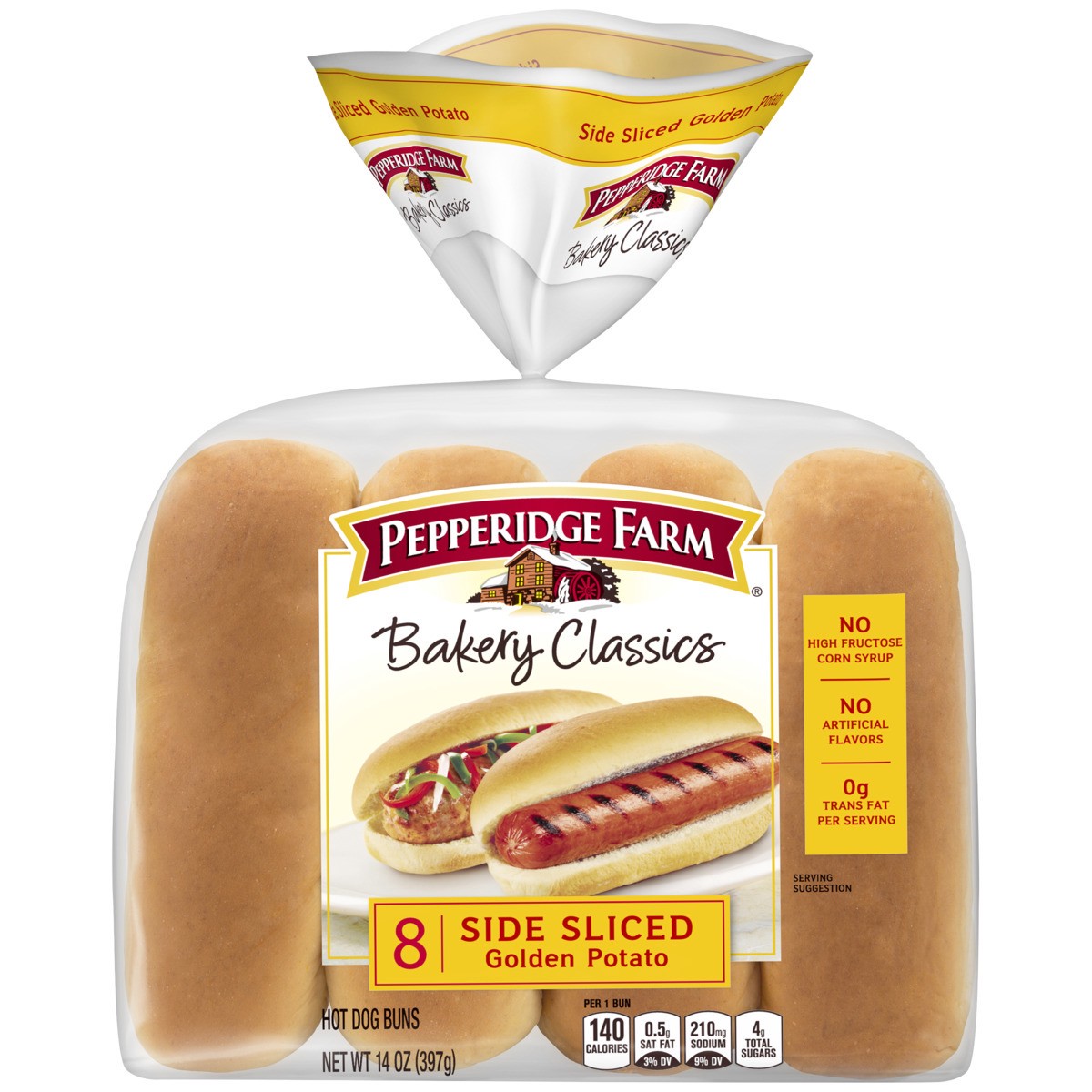 Pepperidge Farm Bakery Classics Side Sliced Golden Potato Hot Dog Buns, 14 oz Bag, 8-pack