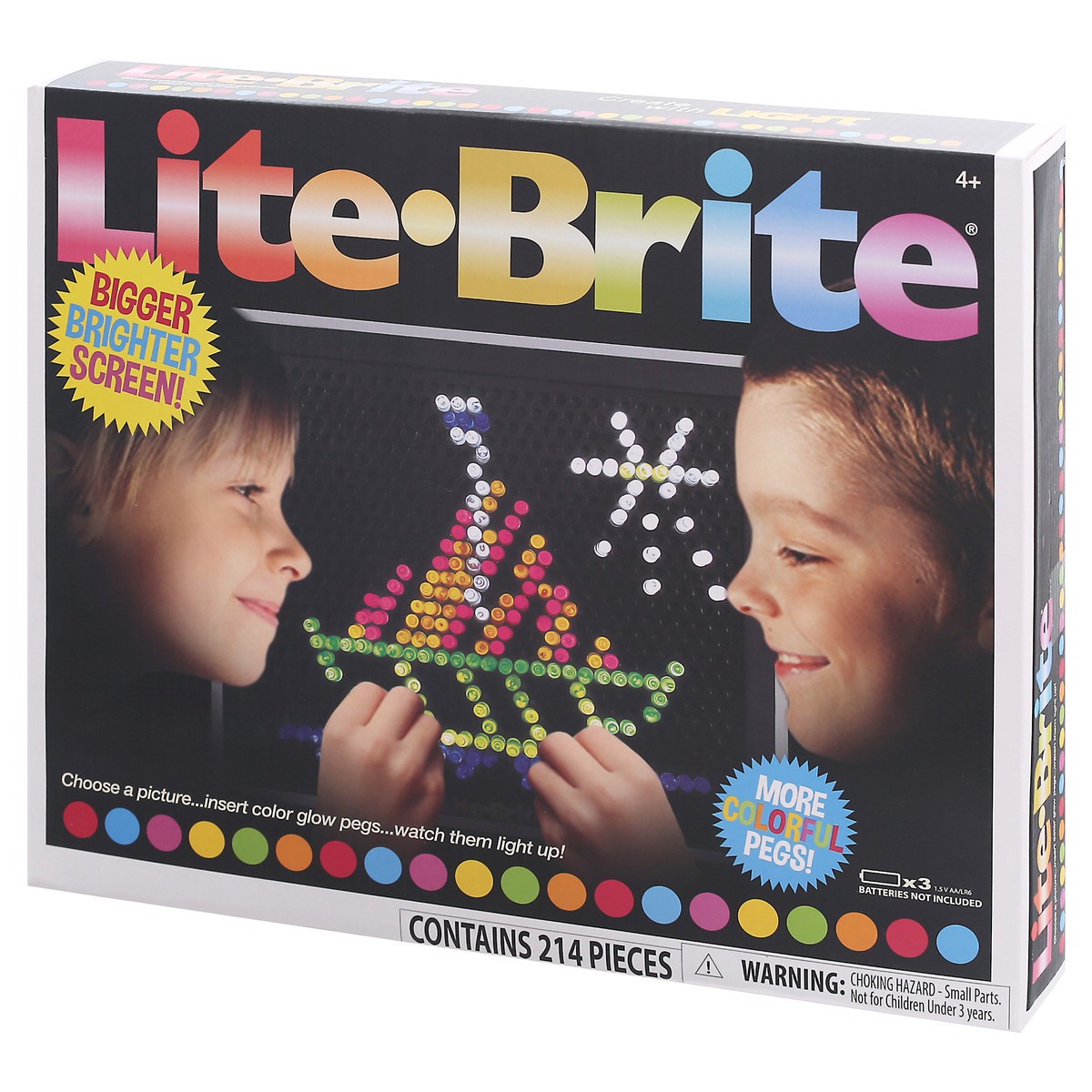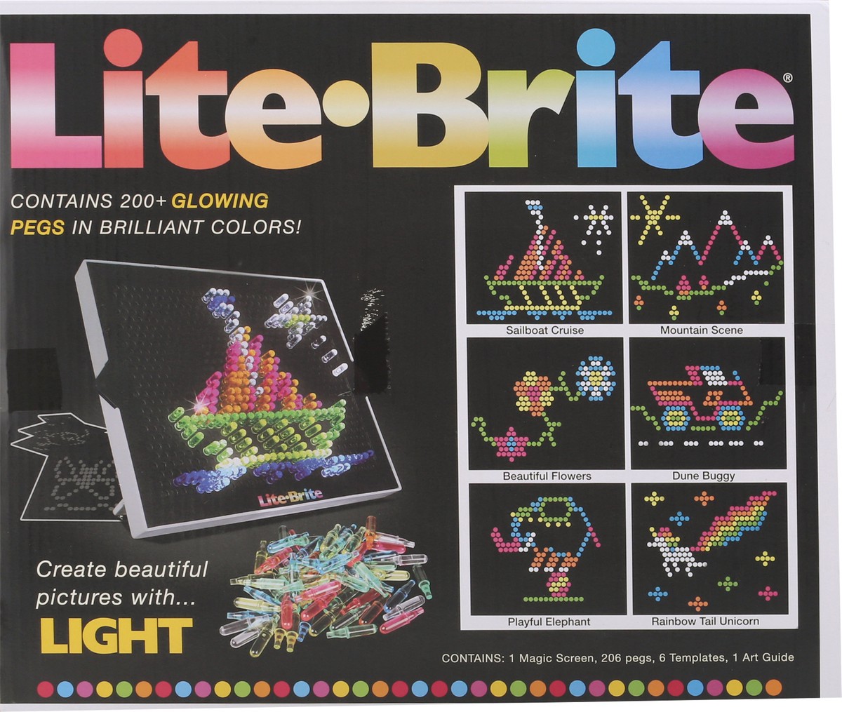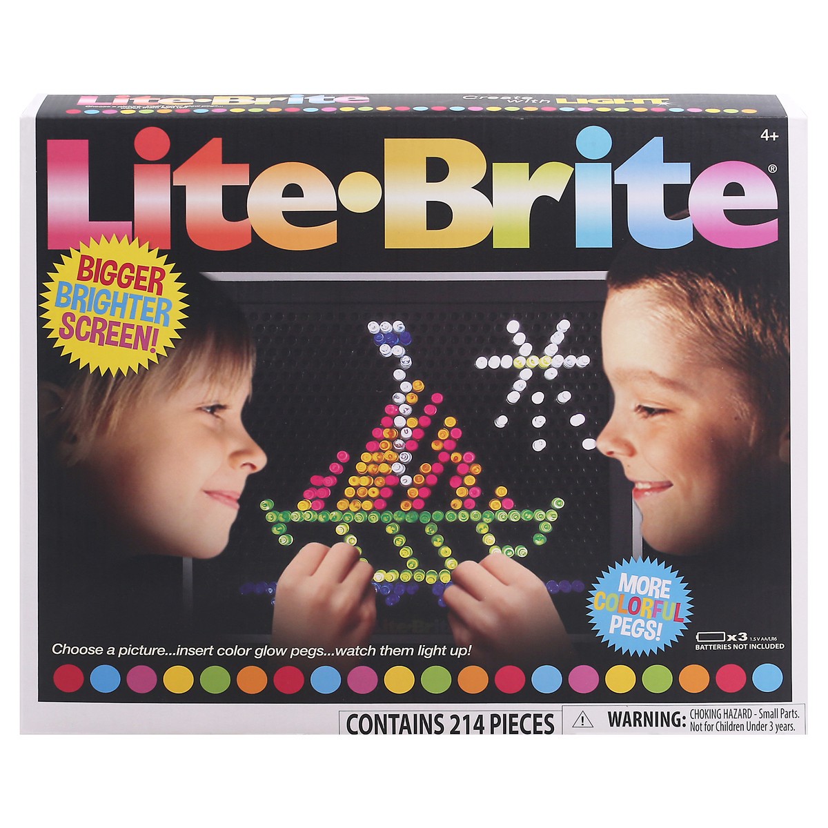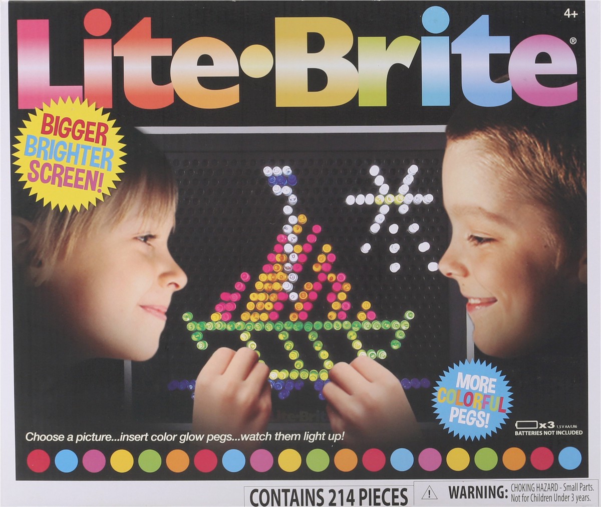 It’s just like you remember, but better than ever! Lite-Brite lets you create art with light using design templates and bright, colorful pegs - then lights it up like a neon sign.214 PiecesAges 3+