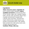INGREDIENTS: WATER, BROCCOLI, CREAM, VEGETABLE OIL (CORN, CANOLA, AND/OR SOYBEAN), CELERY, MODIFIED CORNSTARCH, CONTAINS LESS THAN 2% OF: BUTTER, SUGAR, SALT, CHEDDAR CHEESE (MILK, CULTURES, SALT, ENZ…