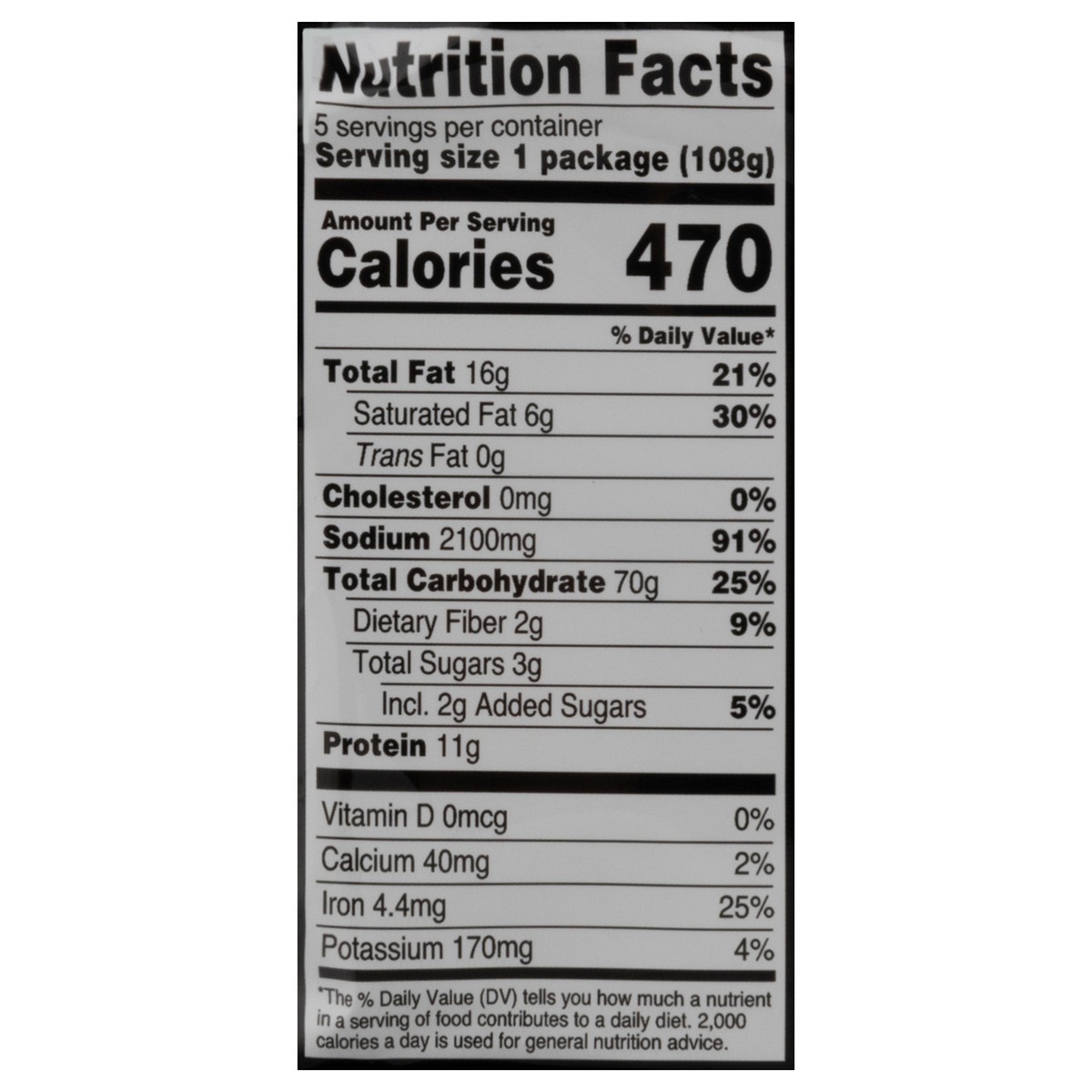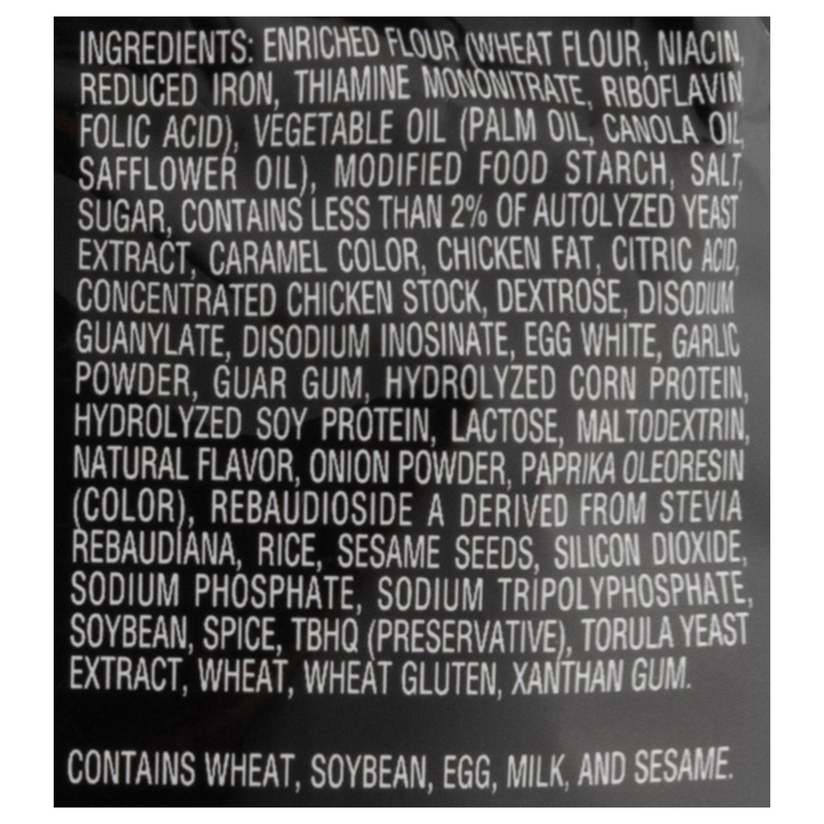 Enriched Flour (Wheat Flour, Niacin Reduced Iron, Thiamine Mononitrate, Riboflavin Folic Acid), Vegetable Oil (Palm Oil, Canola Oil Safflower Oil), Modified Food Starch, Salt, Sugar, Contains Less tha…