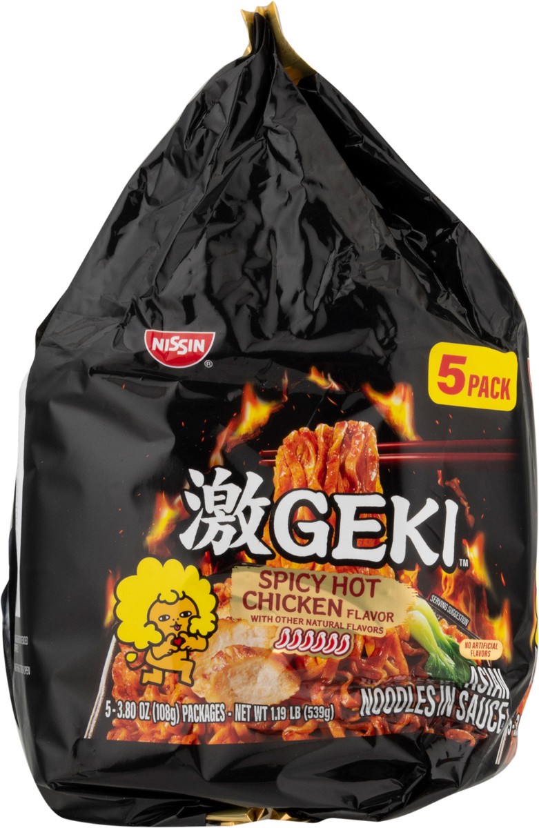 Nissin Geki Spicy Hot Chicken Flavor Asian Noodles in Sauce 5 - 3.80 oz Packs