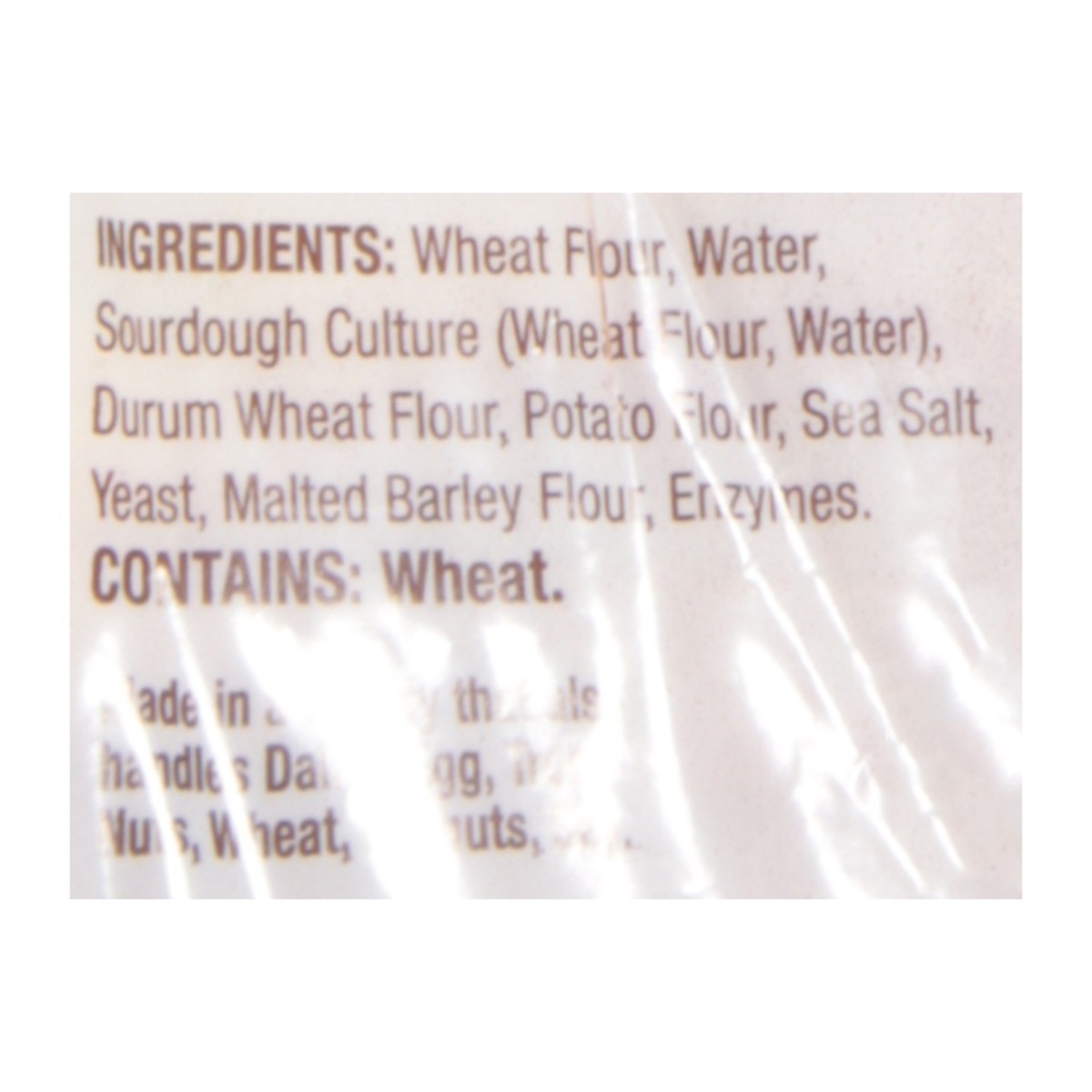 Wheat Flour, Water, Sourdough Culture (Wheat Flour, Water), Durum Wheat Flour, Potato Flour, Sea Salt, Yeast, Malted Barley Flour, Enzymes.