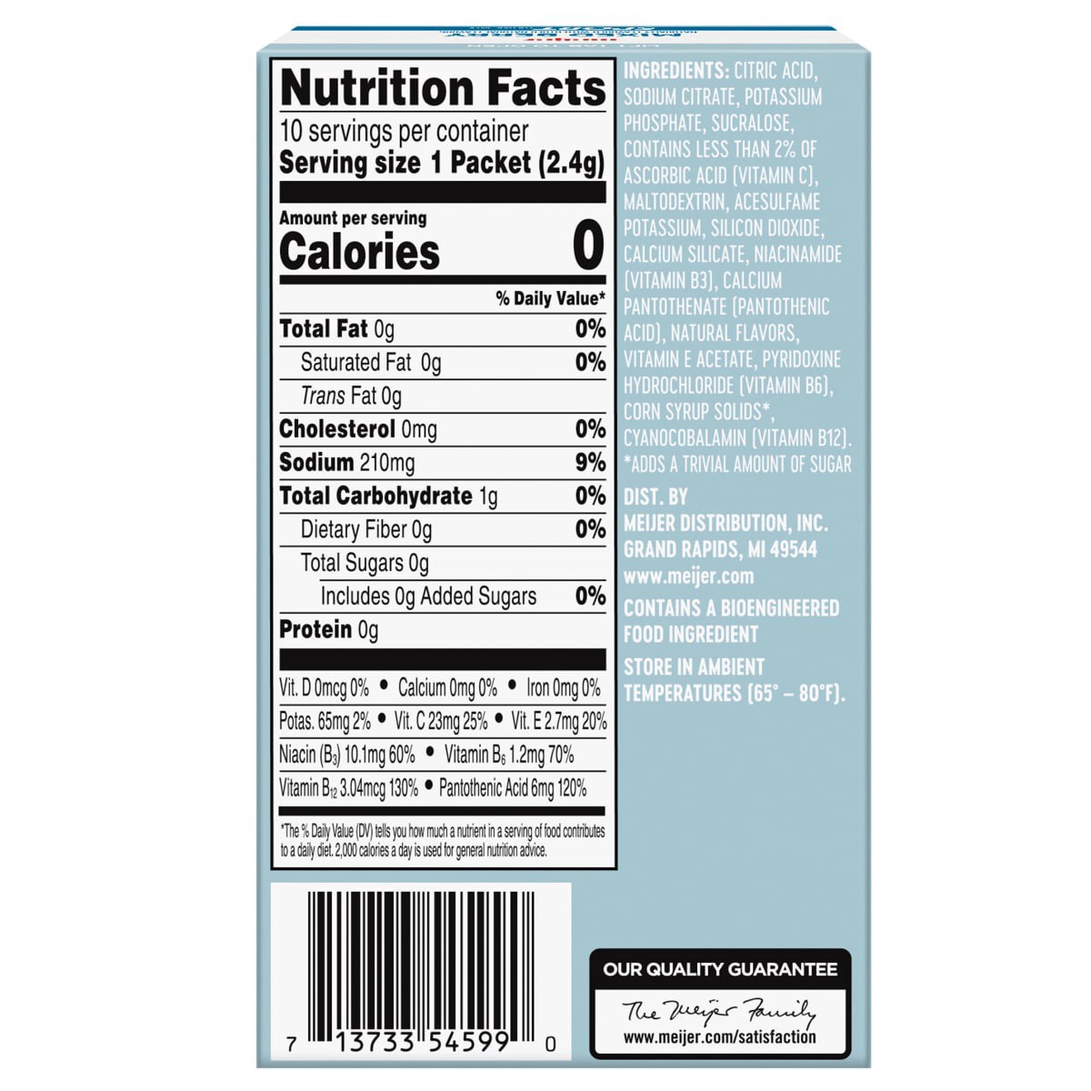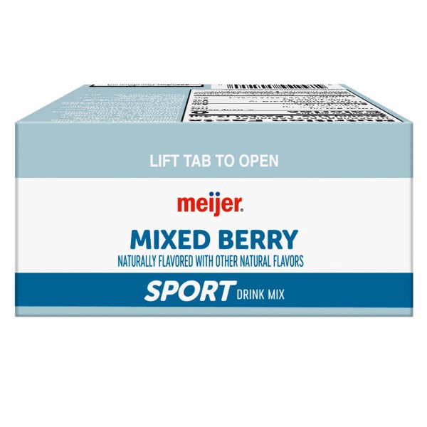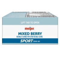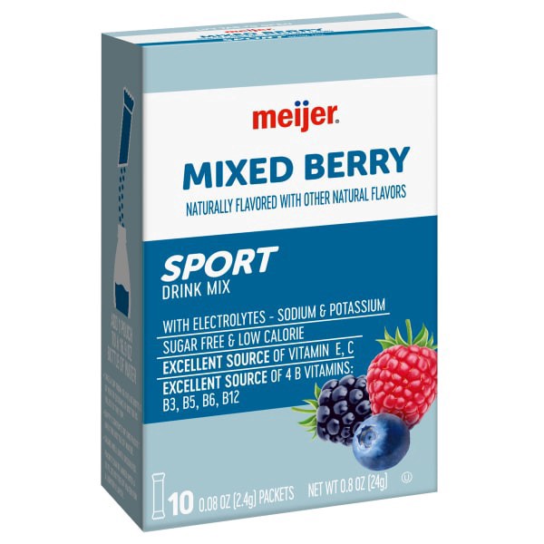 The Meijer Mixed Berry Sport Drink Mix is a low-calorie, sugar-free beverage enriched with Vitamin E, Vitamin C, and four B Vitamins. Simply add a pouch to a 16.9 oz water bottle for a refreshing, ele…