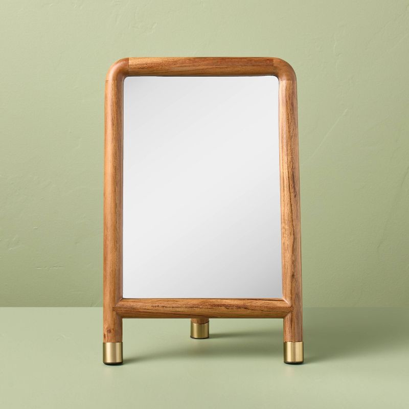A perfect blend of style and function, this Wood Accent Mirror with Brass Feet from Hearth & Hand™ with Magnolia is a versatile addition to your space. Designed in a rectangular shape, this accent mir…
