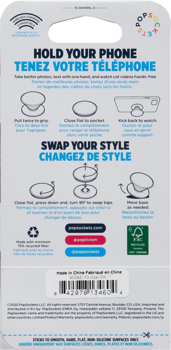 Phone grip & stand with swappable top. Wireless charging compatible. Hold your phone. Take better photos, text with one hand, and watch cat videos hands-free. Try me! Pull twice to grip. Close flat to…