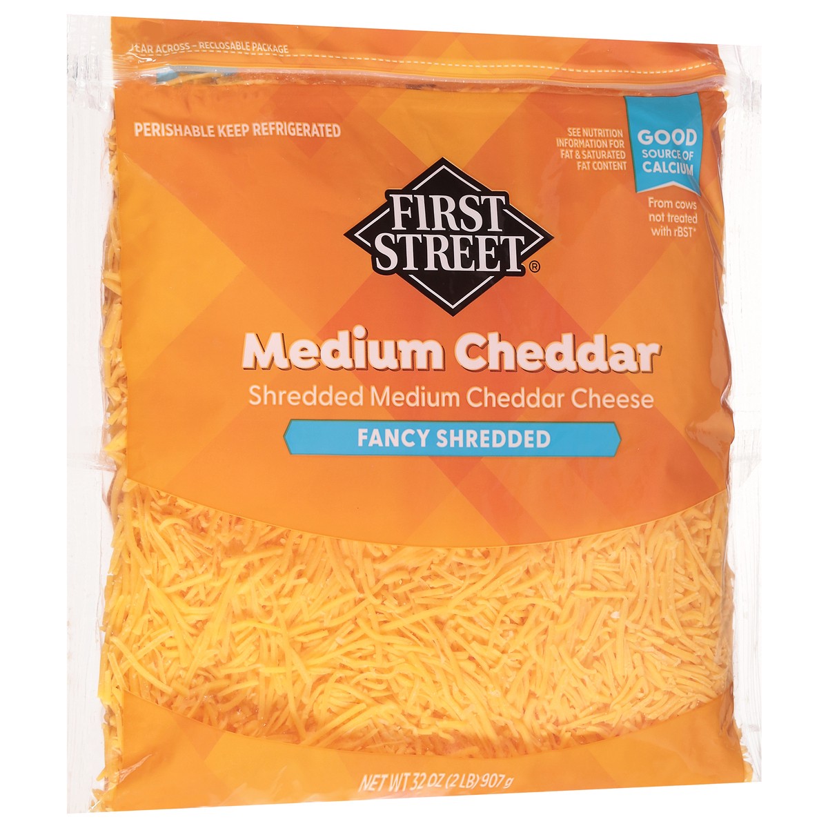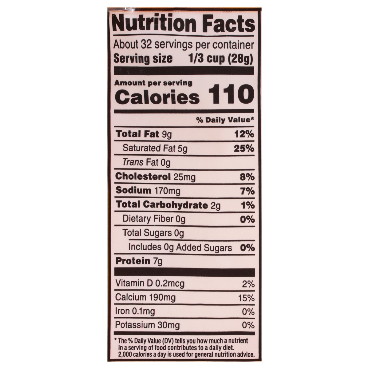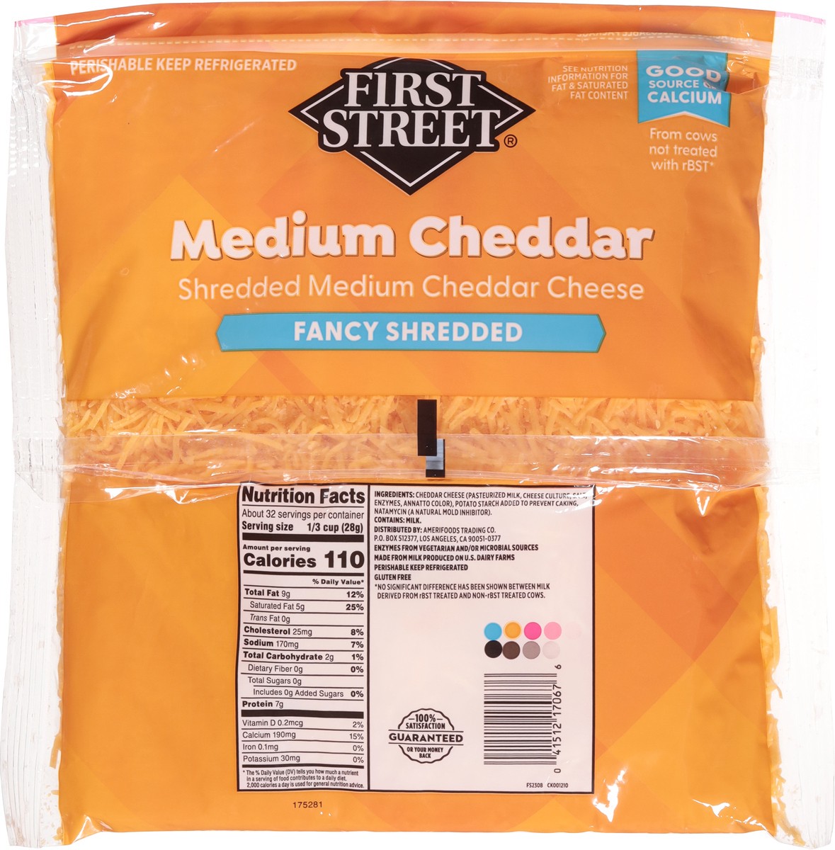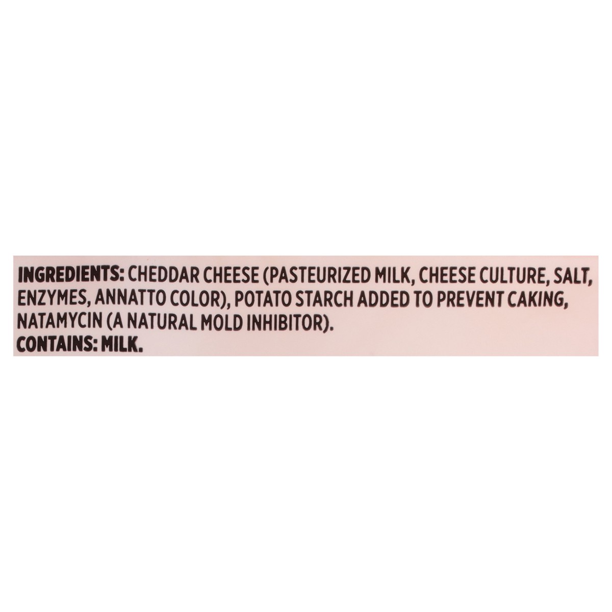 Cheddar Cheese (Pasteurized Milk, Cheese Culture, Salt, Enzymes, Annatto Color), Potato Starch Added to Prevent Caking, Natamycin (a Natural Mold Inhibitor).
