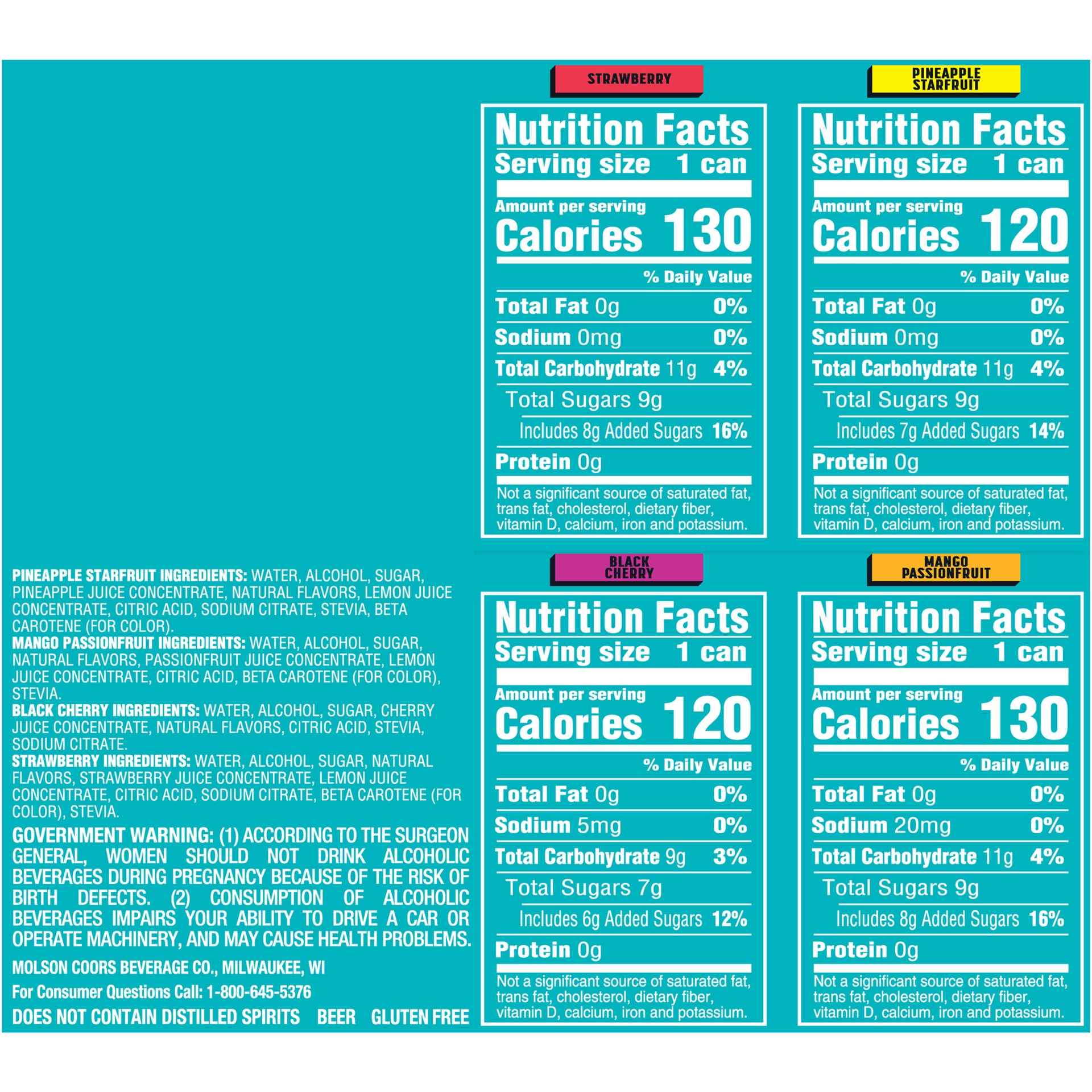 - Four bold flavors with 4.4% ABV: Strawberry, Pineapple Starfruit, Mango Passionfruit, and Raspberry Dragonfruit