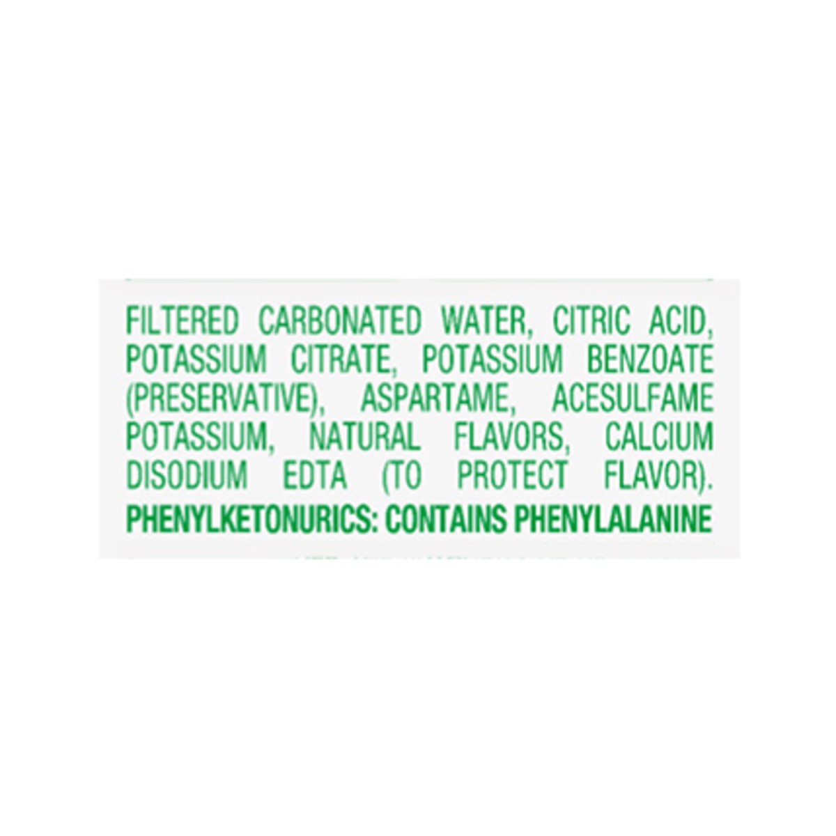 Filtered Carbonated Water, Citric Acid, Potassium Citrate, Potassium Benzoate (Preservative), Aspartame, Acesulfame Potassium, Natural Flavors, Calcium Disodium EDTA (to Protect Flavor).