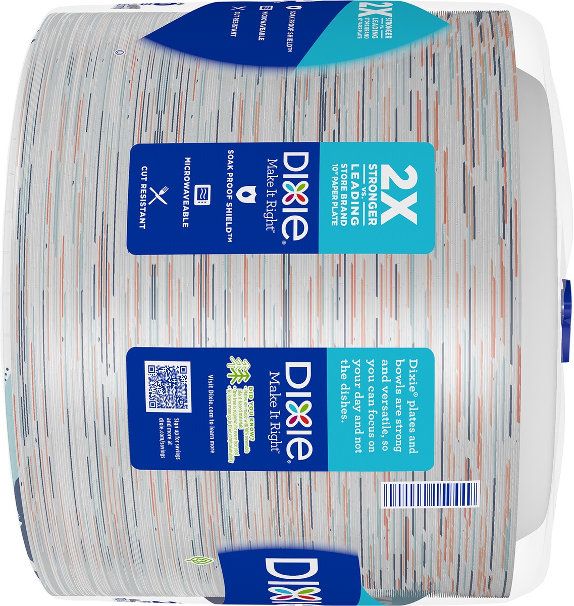 - NEW LOOK, SAME GREAT PLATE. Dixie Paper Plates have a new design while keeping the same strength to make mealtime hassle-free. During this product transition, we cannot guarantee which design you will receive; rest assured that it’s the same great plate either way.