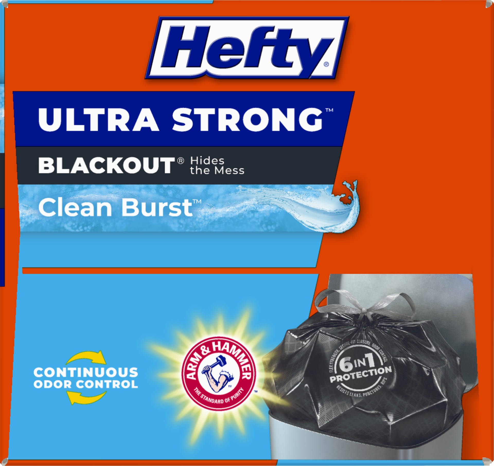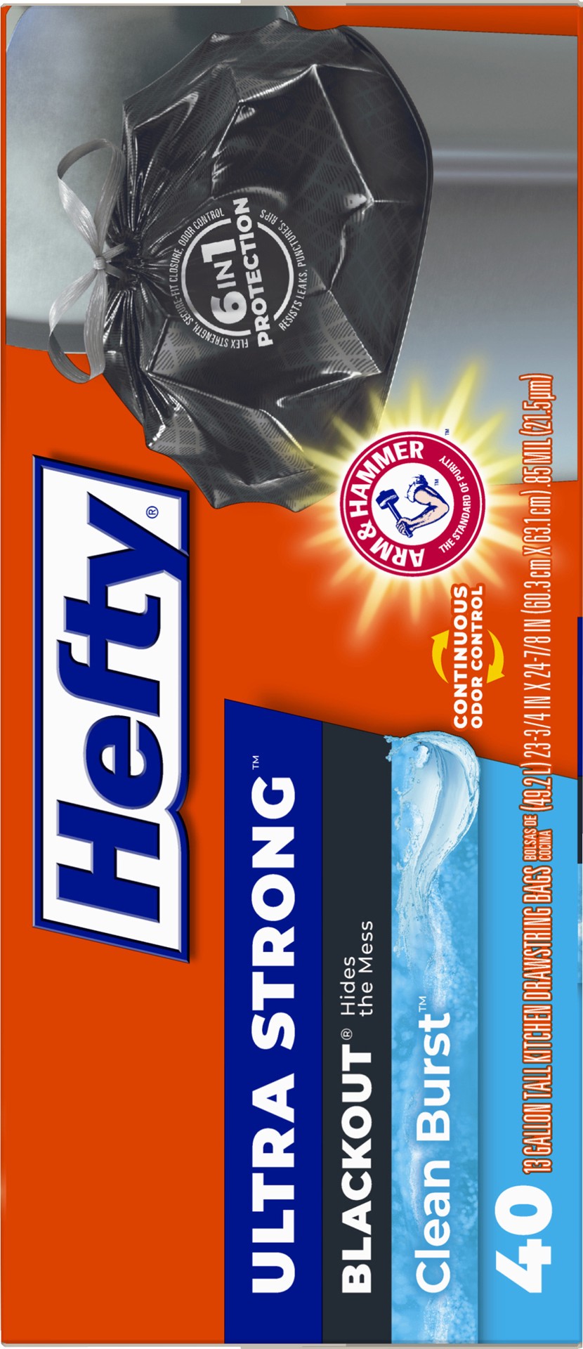 Hefty Trash Bags Drawstring Ultra Strong Blackout Tall 13 Gallon Clean Burst - 40 Count