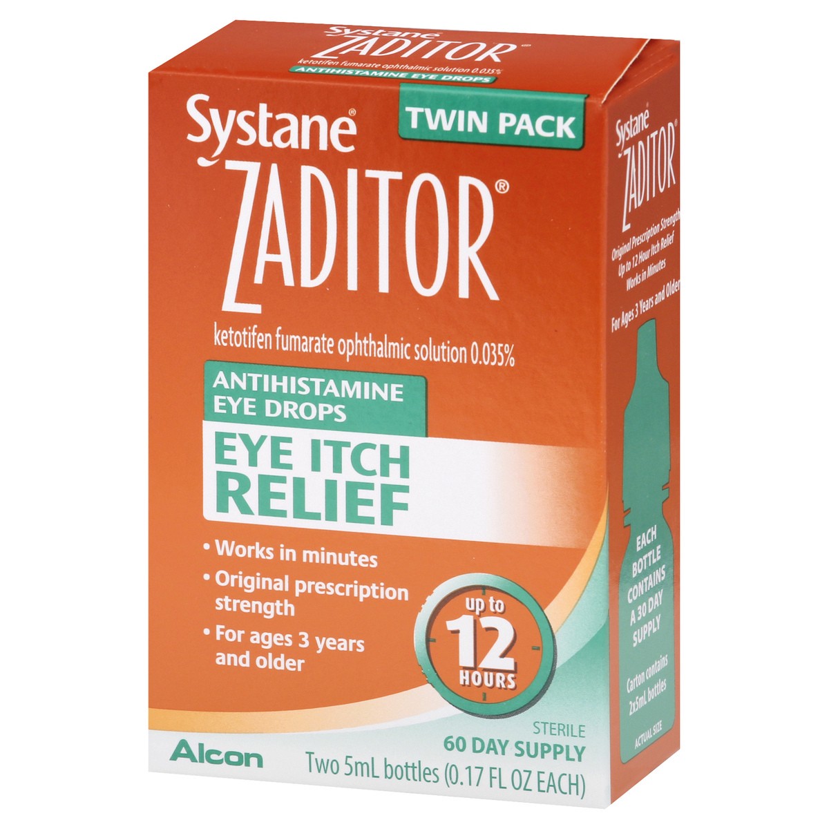 Zaditor Eye Drops Antihistamine Original Prescription Strength Eye Itch Relief - 2-0.17 Fl. Oz.