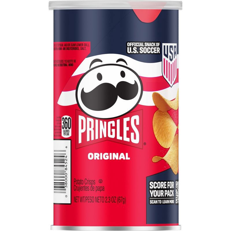 - Includes one, 2.3oz Grab N' Go can of ready-to-eat Pringles Original potato crisps chips; Packaged for freshness and great taste