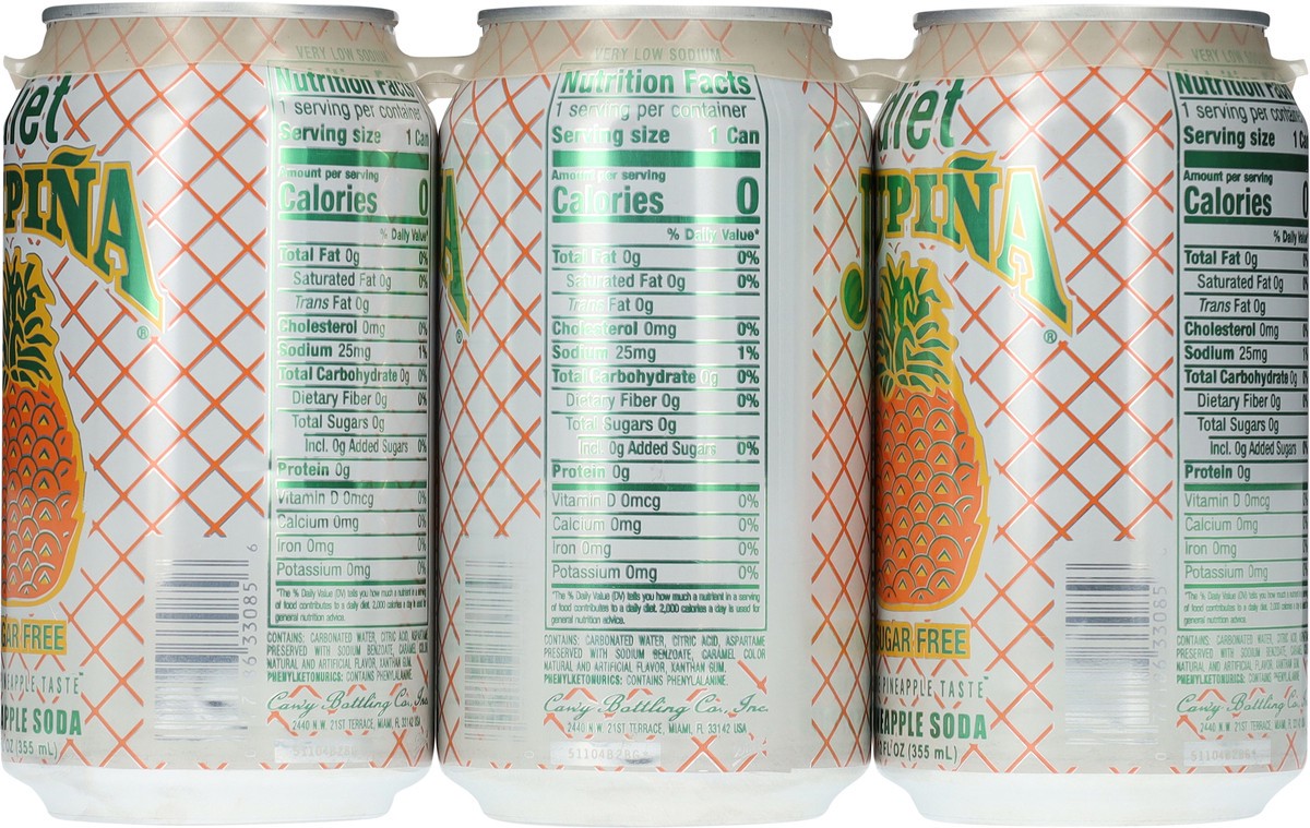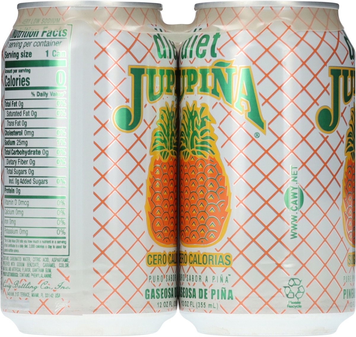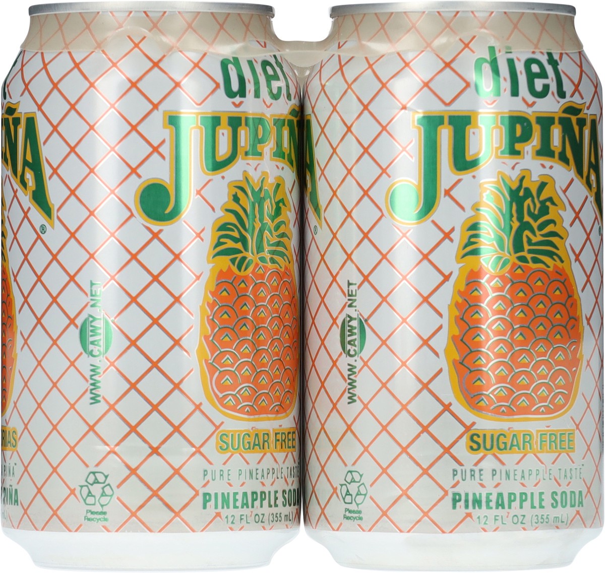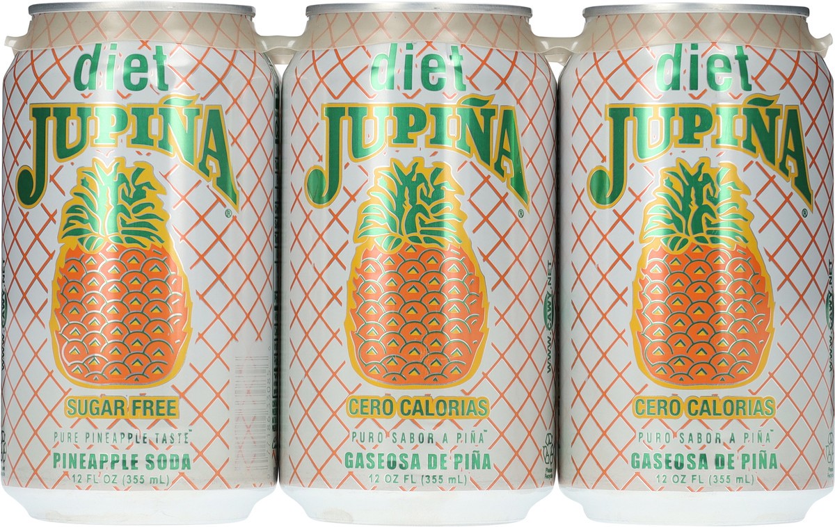 Jupina Sugar Free Diet Pineapple Soda 6 - 12 fl oz Cans