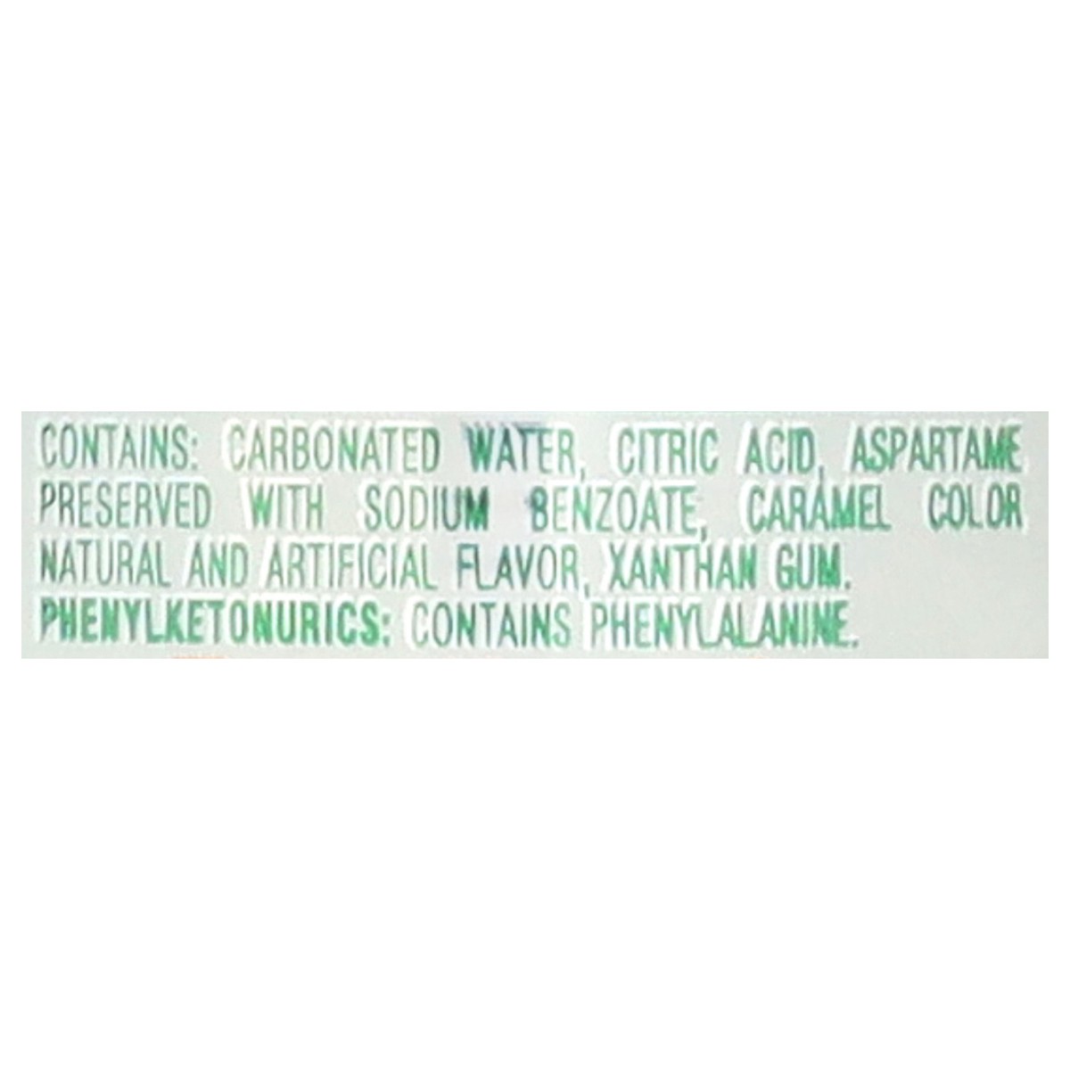 Contains: Carbonated Water, Citric Acid, Aspartame Preserved with Sodium Benzoate, Caramel Color Natural and Artificial Flavor, Xanthan Gum.
