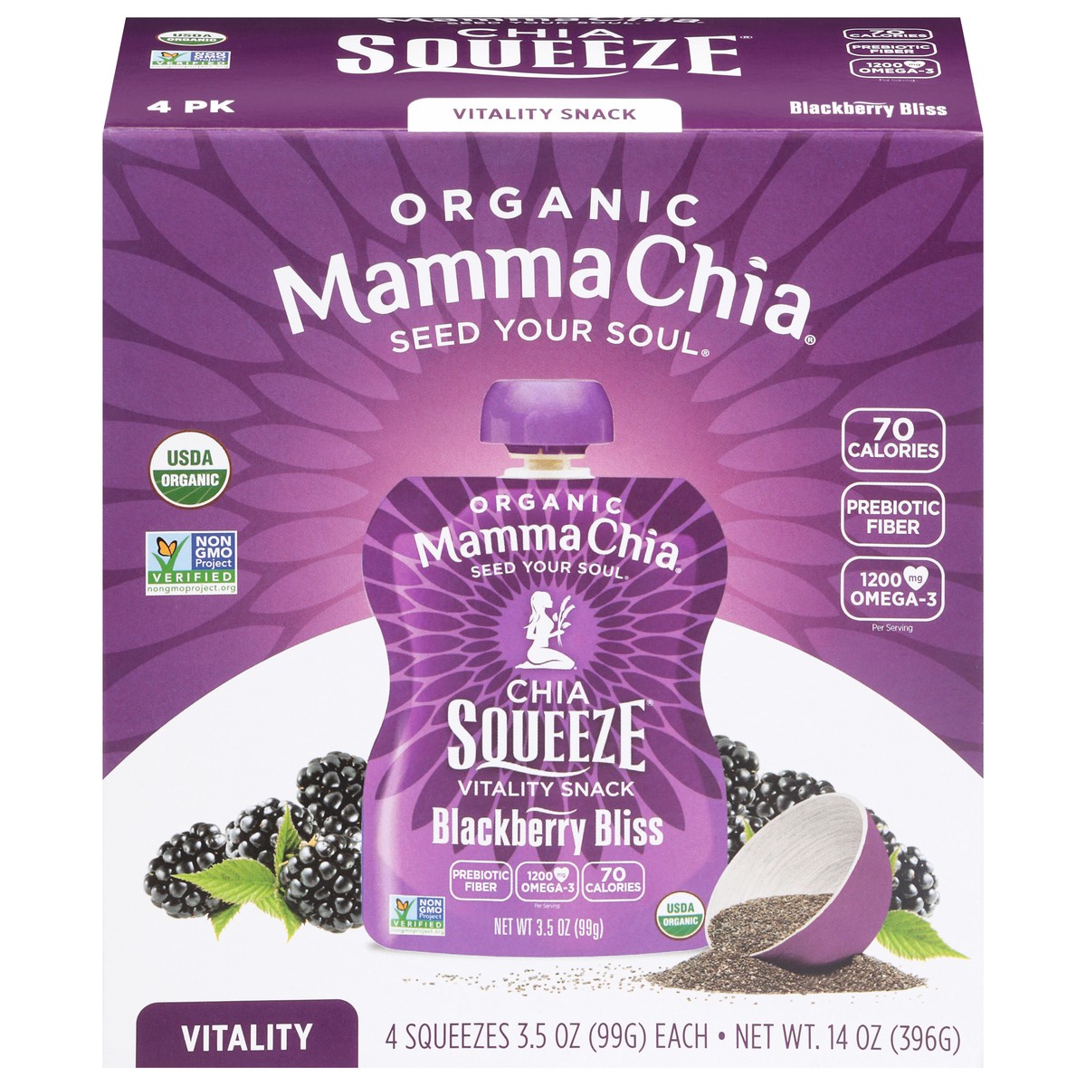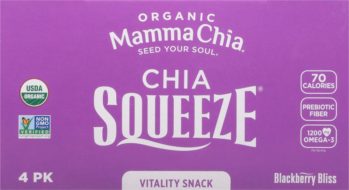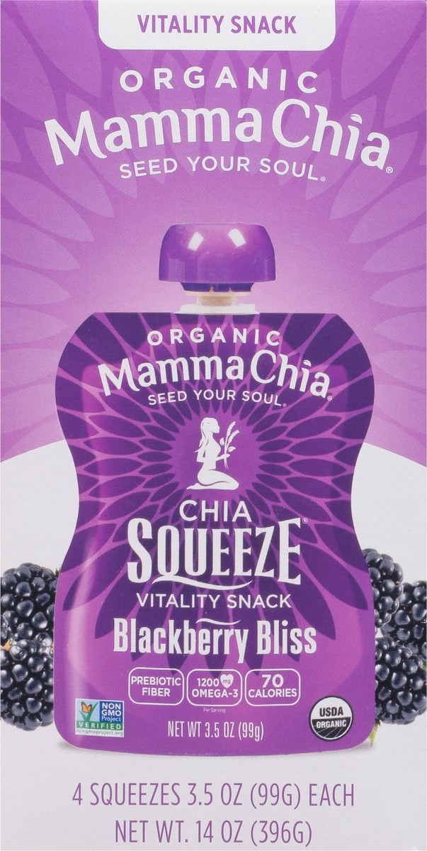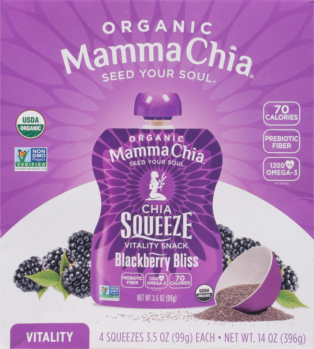 Mamma Chia Chia Squeeze Organic Blackberry Bliss Vitality Snack - 4 x 3.5 oz Pouches