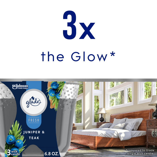 - The 3-wick candle provides three times more glow**versus Glade single wick candle