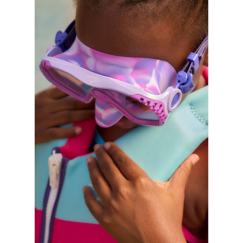 Speedo Junior Dive Wave Watcher Swim Mask - Tie Dye Neon Jelly Tie Dye/Clear: Anti-Fog Lens, UV Protection, Easy Adjust Strap, Ages 6-14